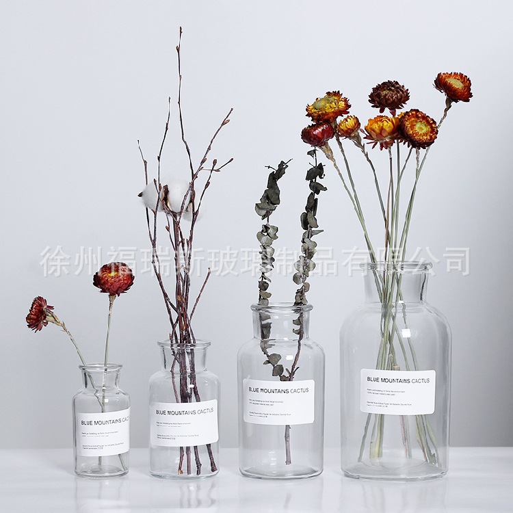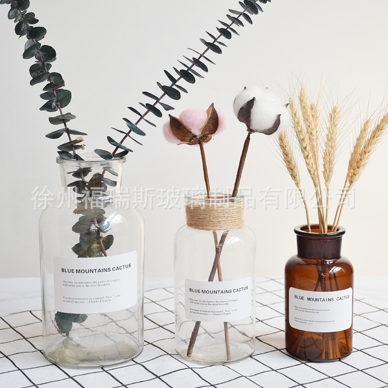 [Очаровательный мастер] Прозрачная ваза в скандинавском стиле, ретро-дизайн, цветочная композиция, гидропонная декоративная наклейка, джутовая веревка, коричневый цвет, стиль ins.