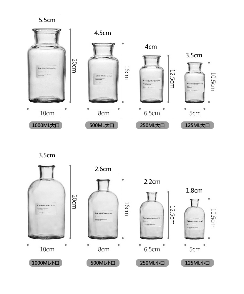 1000ml,高20cm,直径10.5cm,口径5.5cm,一箱30只