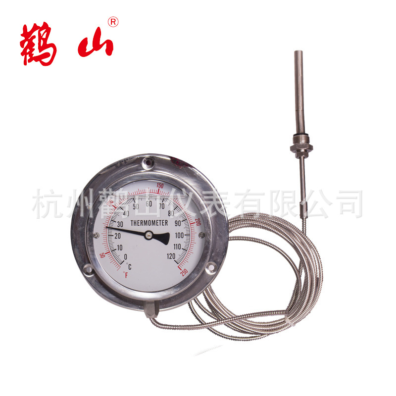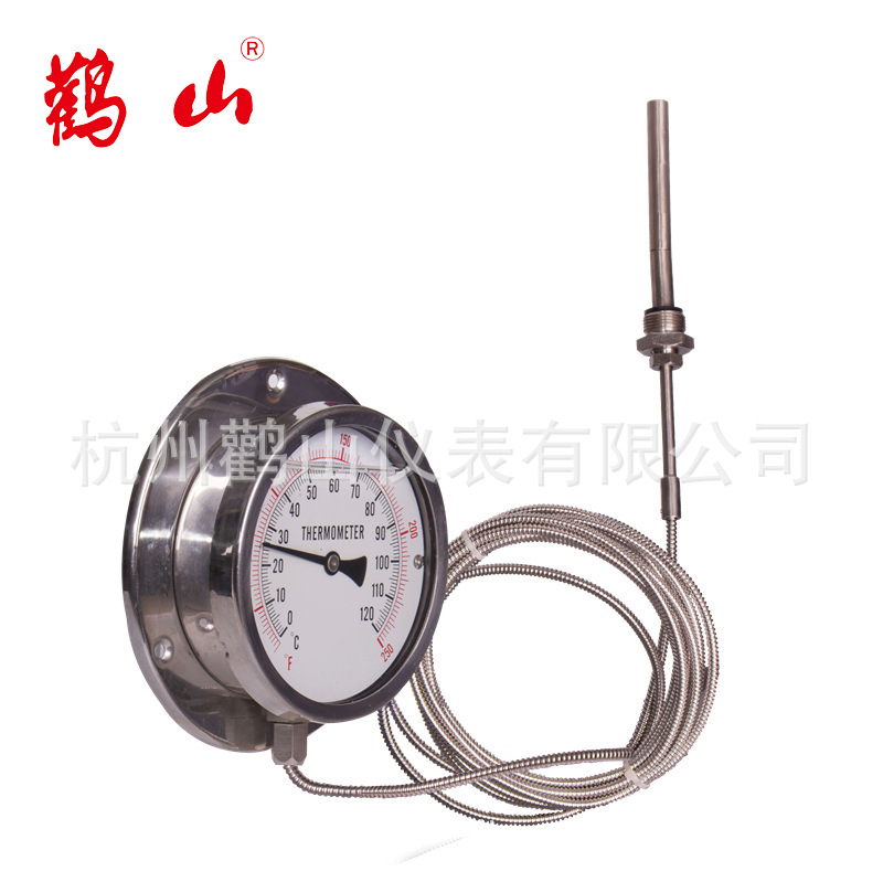 适用于生产过程中较远距离的非腐蚀性液体、蒸气或气体的温度测量。如测量对铜合金有腐蚀作用的液体、气体和蒸气时,请订不锈钢温包的温度计。