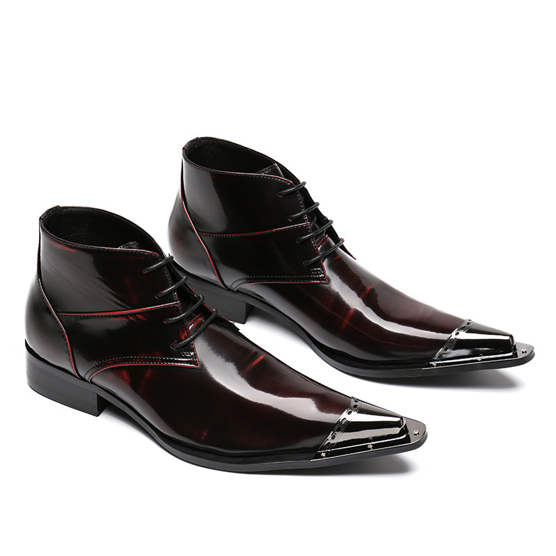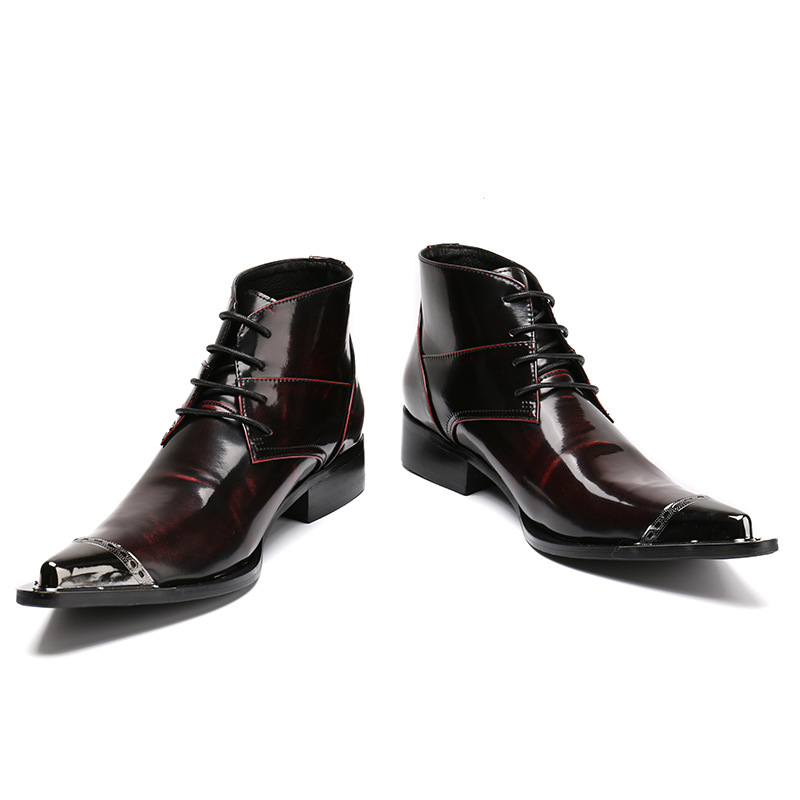Модные короткие мужские ботинки из кожи с острым носком, Внешнеторговые кожаные ботинки цвета красного вина на шнуровке с железным носком, короткие ботинки, Яркие Кожаные джинсовые ботинки, ботинки в Корейском стиле