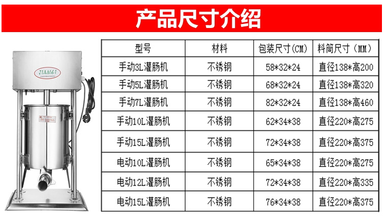 深圳市嘉美机械制造有限公司专业生产绞肉机,手动灌肠机,电动灌肠机,和面机,欢迎各位新老客户询价洽谈!电话:18829908732;QQ:2640384190