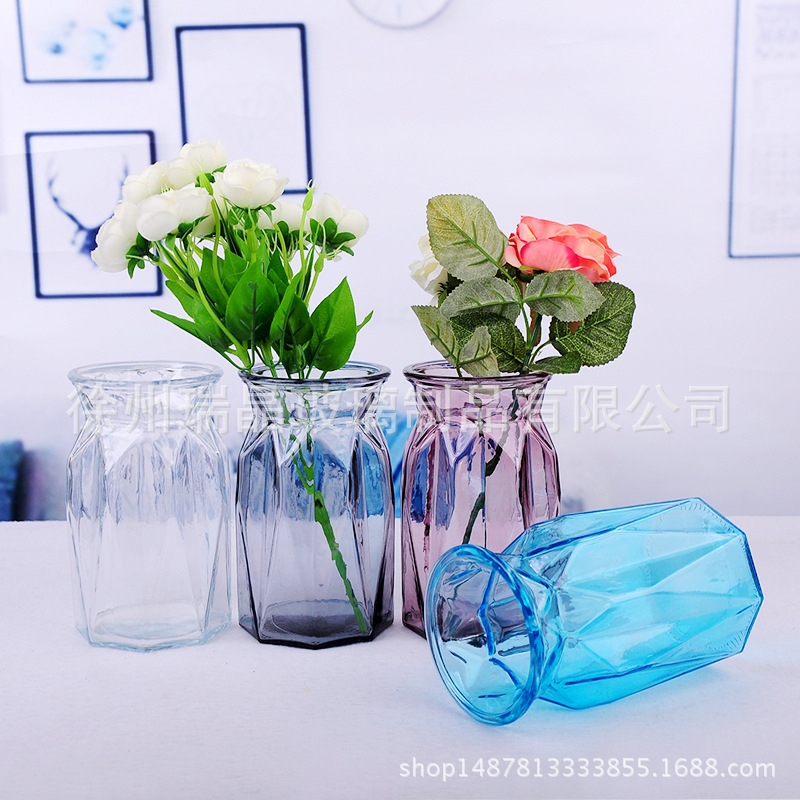 Новая европейская ретро прозрачная красочная стеклянная ваза с ромбами, предметы интерьера, ваза с ромбами, гидропонная ваза