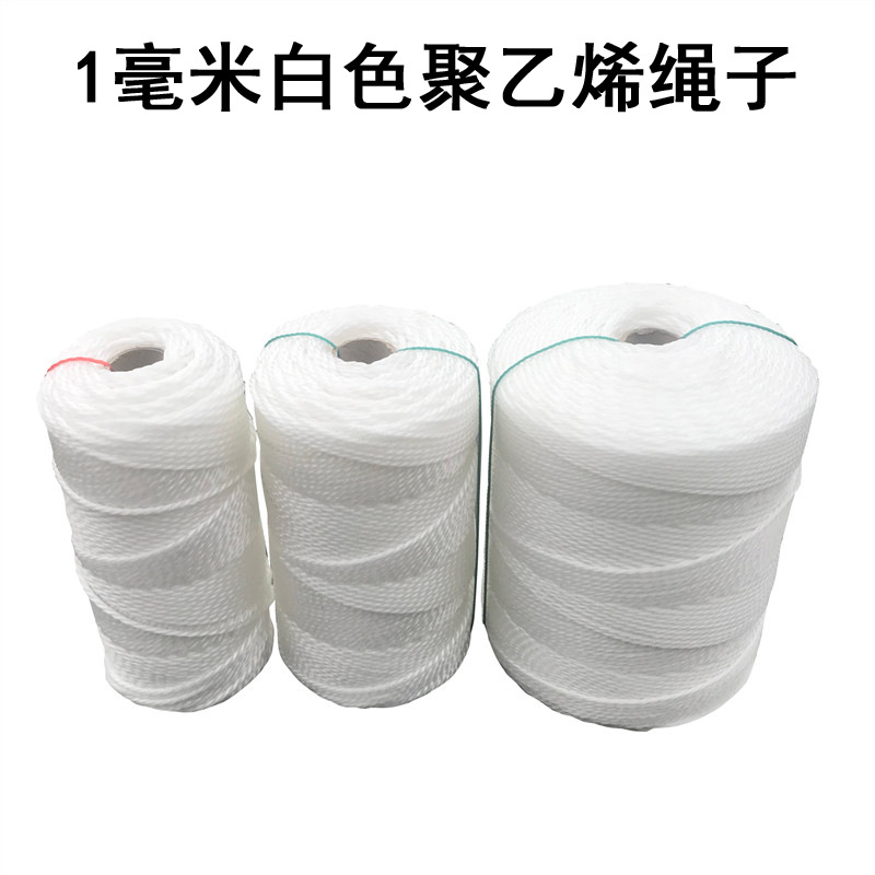 1毫米拉力9斤,断里拉力20斤左右!百分之百原材料制作而成!!全新料!PE材料!耐晒!耐腐!质!!!1MM白色尼龙绳,直径1毫米,耐水,耐酸,抗腐蚀。可适合广告用绳,打包绳等,尼龙绳子 打包绳全新料.塑料绳子!渔网线!