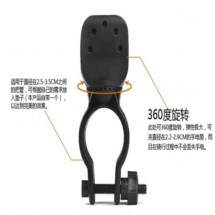 2.配合LED手电使用,可以水平360度旋转。内置可自由调节的带齿介面,加强固定.