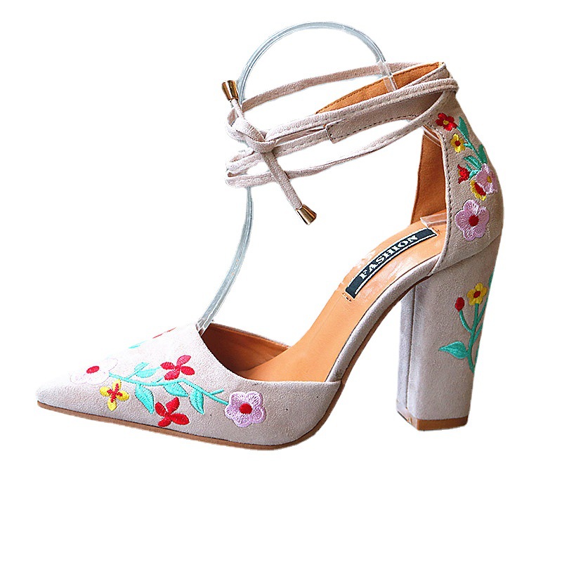 Juti в наличии Европейская и американская внешняя торговля вышитые матовые толстые каблуки женские сандалии Внешняя торговля плюс размер 35-43 женские туфли на высоком каблуке