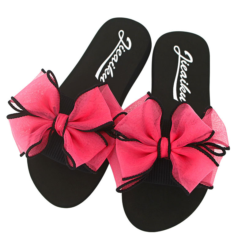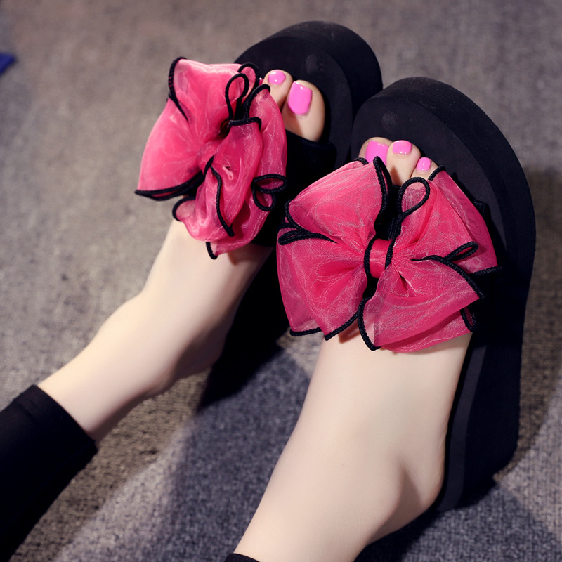 2023 Новые Нежные женские тапочки ручной работы на толстой подошве с бантом, женские летние слайд-Нескользящие сандалии на танкетке