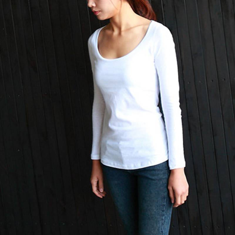 Новая однотонная хлопковая футболка с длинным рукавом и U-образным воротником, нижняя рубашка, Женская Плюс Толстая, большие размеры 200 кг, поколение волос