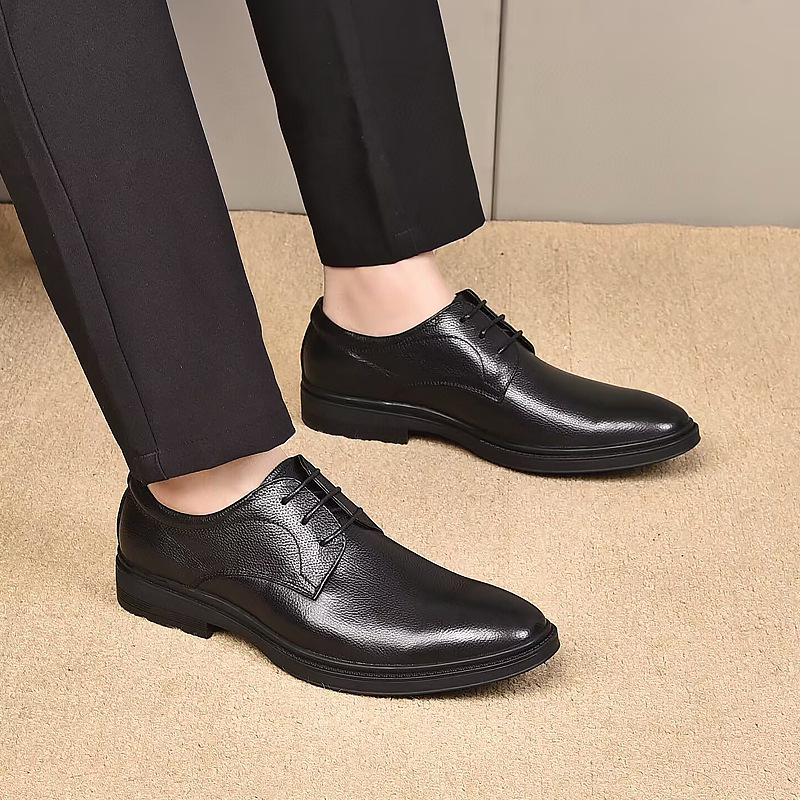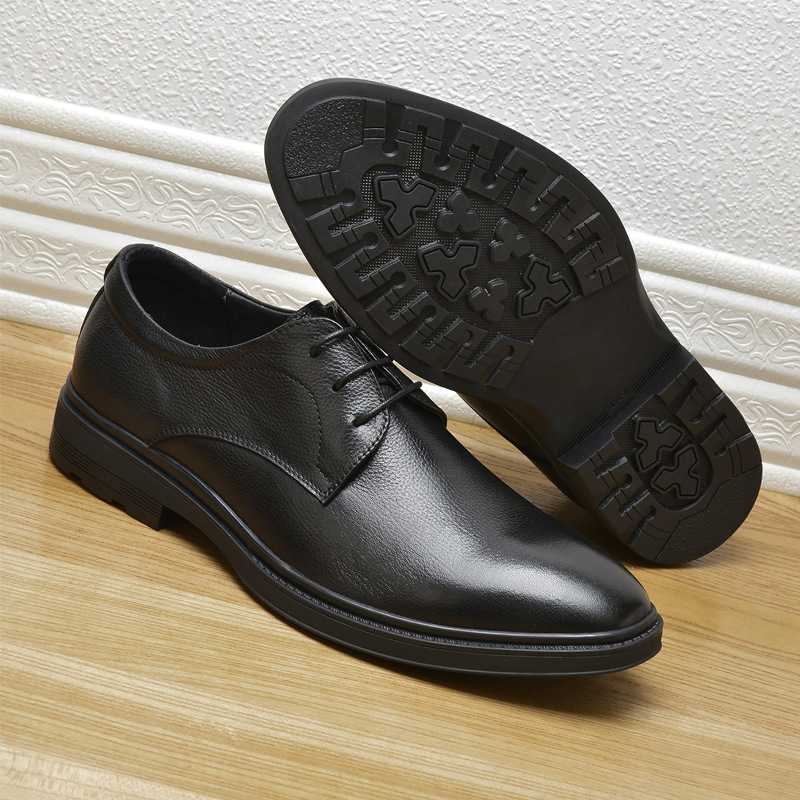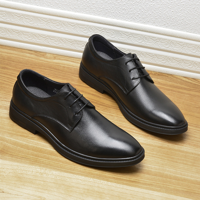 Осенние мужские деловые кожаные туфли, формальные туфли из мягкой кожи первого слоя, мужские низкие повседневные туфли на шнуровке, нескользящие и износостойкие.