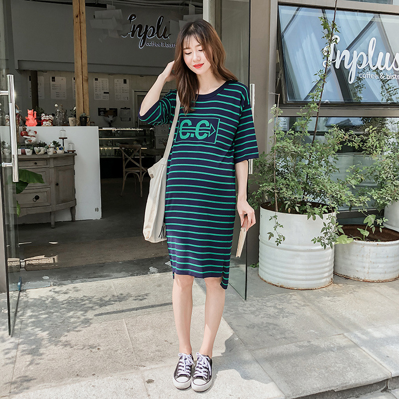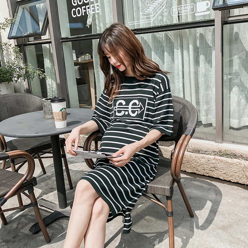 2018 новое летнее платье для беременных в Корейском стиле платье для беременных из ледяного шелка средней длины плюс размер платье для беременных мода с короткими рукавами