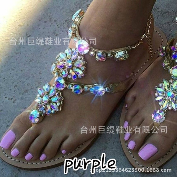 2019 летняя новая Европейская и американская цепочка для женской обуви больших размеров Amazon с ромбовидными плоскими строчками, римские сандалии больших размеров