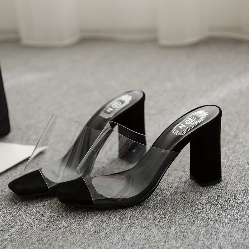 Внешняя торговля сандалии на высоком каблуке больших размеров, женская обувь 2024, летние новые европейские и американские универсальные прозрачные тапочки на толстом каблуке на высоком каблуке
