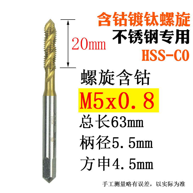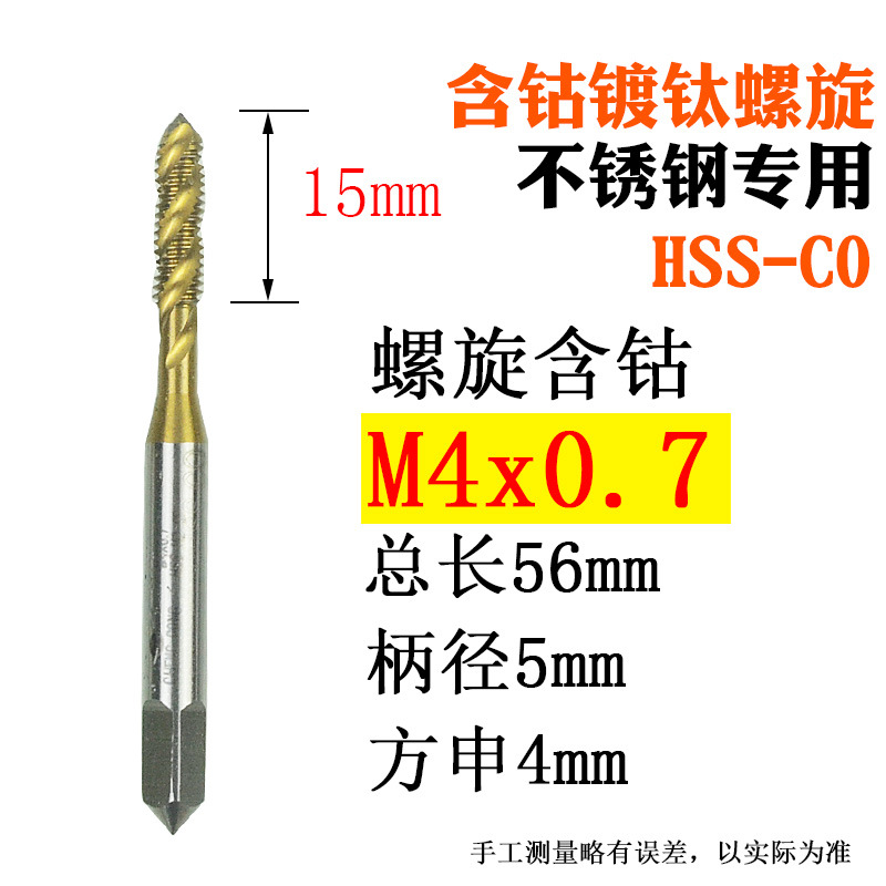 高性能款丝锥可加工HRC30度以下不锈钢,模具钢,普通钢件,有色金属等