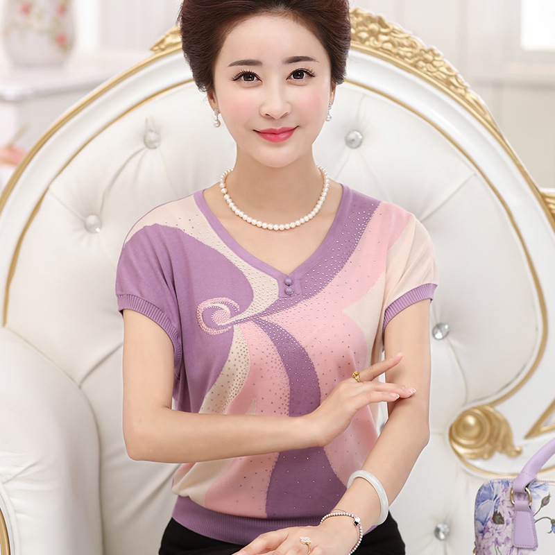 Женская летняя Свободная трикотажная футболка для женщин среднего и пожилого возраста, топ 40-50 лет, летняя одежда для мам среднего возраста, тонкая одежда из ледяного шелка с короткими рукавами