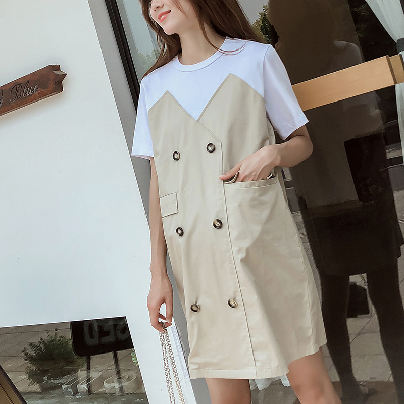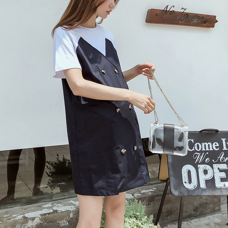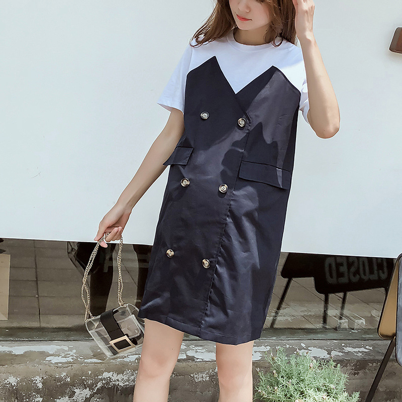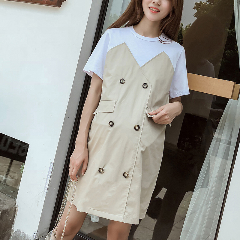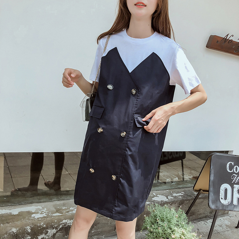 Летняя Корейская Лоскутная юбка для беременных Свободная куртка больших размеров с короткими рукавами, юбка для волос для мамы