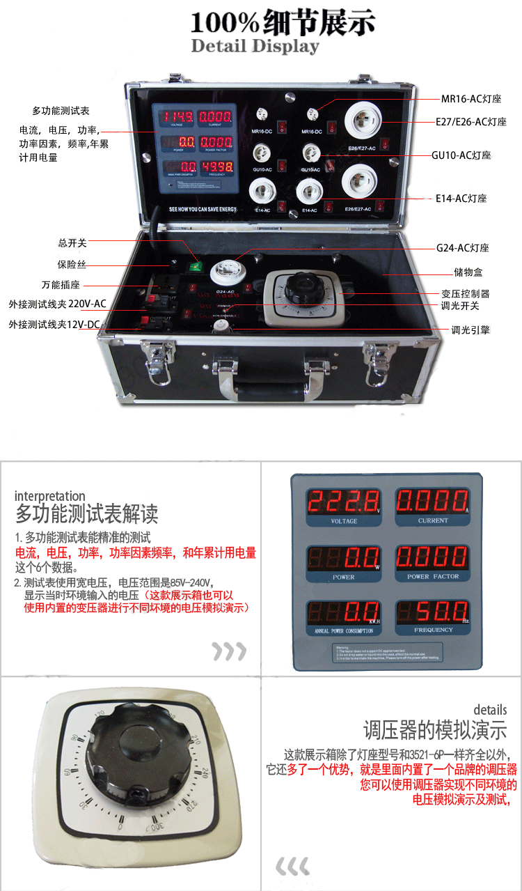 Светодиодный энергосберегающий тестер ламп, традиционная лампа, портативный дисплей, демонстрационная коробка, световой короб соотношение, регулируемое напряжение