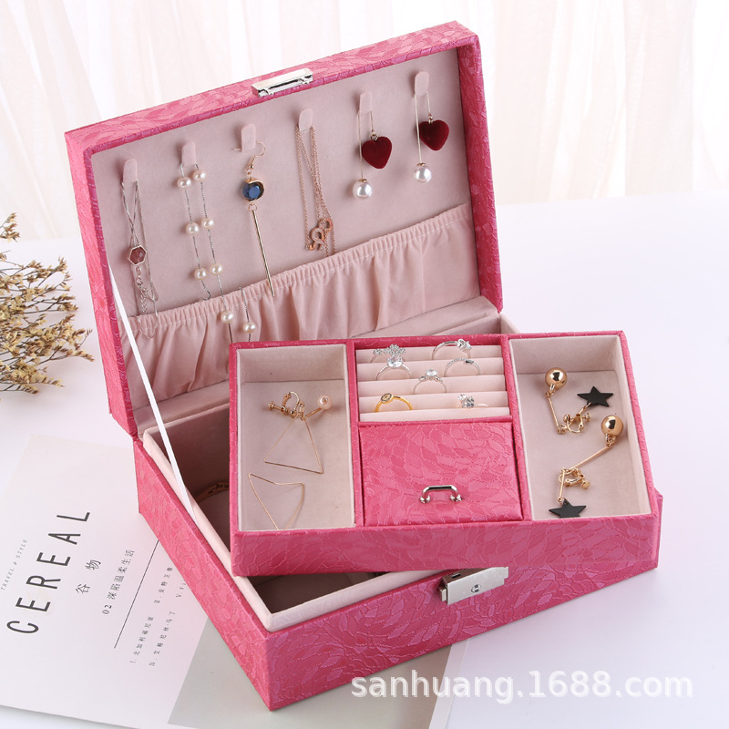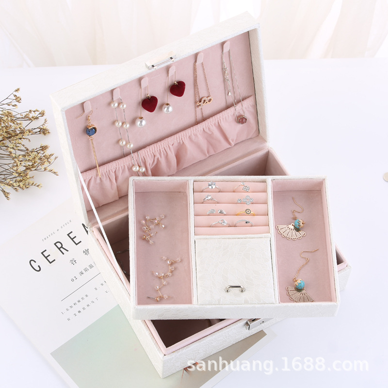 Новая европейская ювелирная коробка для ювелирных изделий многослойная портативная ювелирная коробка для хранения pu креативная коробка для ювелирных изделий оптом подарок
