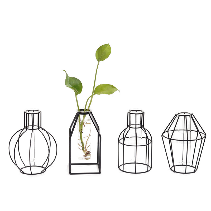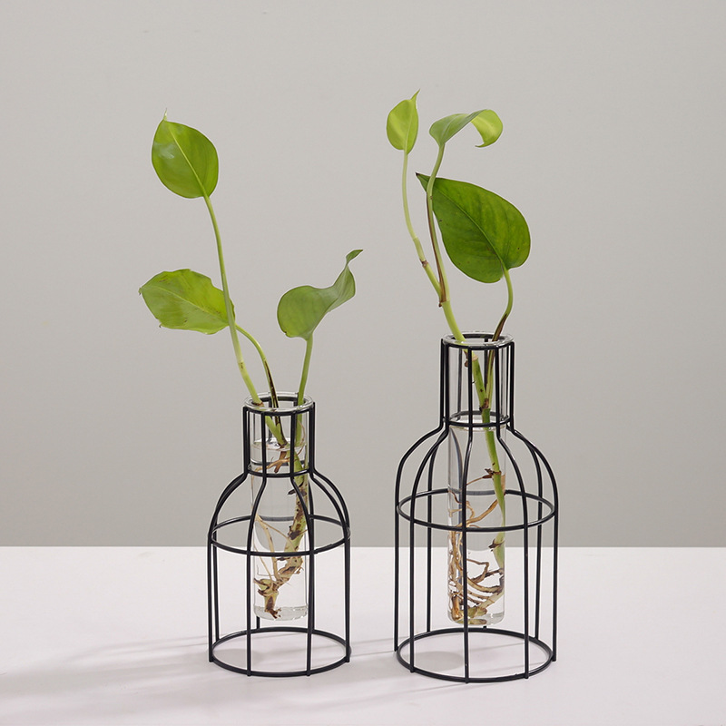 В скандинавском стиле простая Геометрическая железная прозрачная стеклянная гидропонная ваза украшения для гостиной сушеный цветок упорядочить украшения для дома