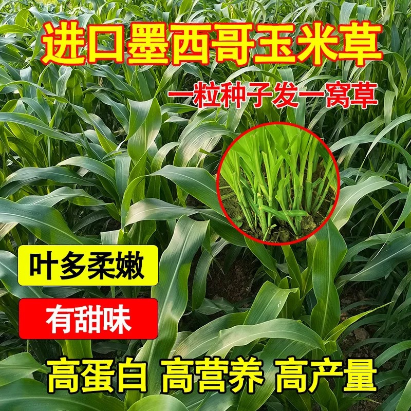 墨西哥玉米草:在热带多刈割表现为短期多年生,其余地区表现一年生草本植物,喜温暖湿润气侯,耐热不耐寒,在10~15℃时生长迅速,遇见高温环境生长出现缓慢情况。遇霜逐渐凋萎,耐酸性土壤,亦稍耐盐碱,在灌溉良好土质肥沃的农田产量高。耐酸、耐水肥、耐热,适于我国内地大部分农区种植。生育期为200--235天,一年可以收割7--9次。墨西哥玉米草是遗传稳定的饲草品种。每丛有分枝30-60多个,茎秆粗壮,枝叶繁茂,质地松脆,具有甜味,牛、羊、猪、鱼、鸡、鸭、鹅都喜食。