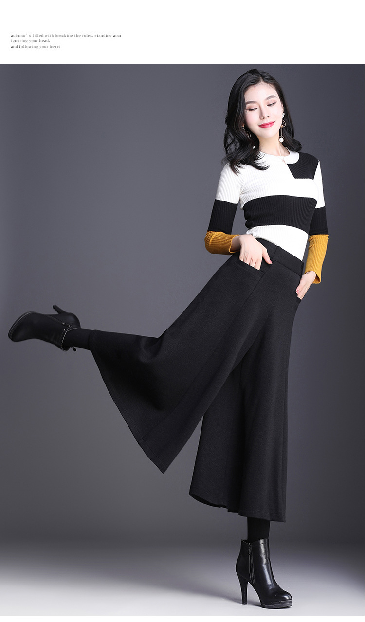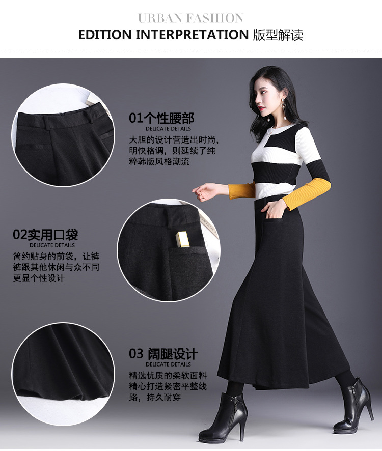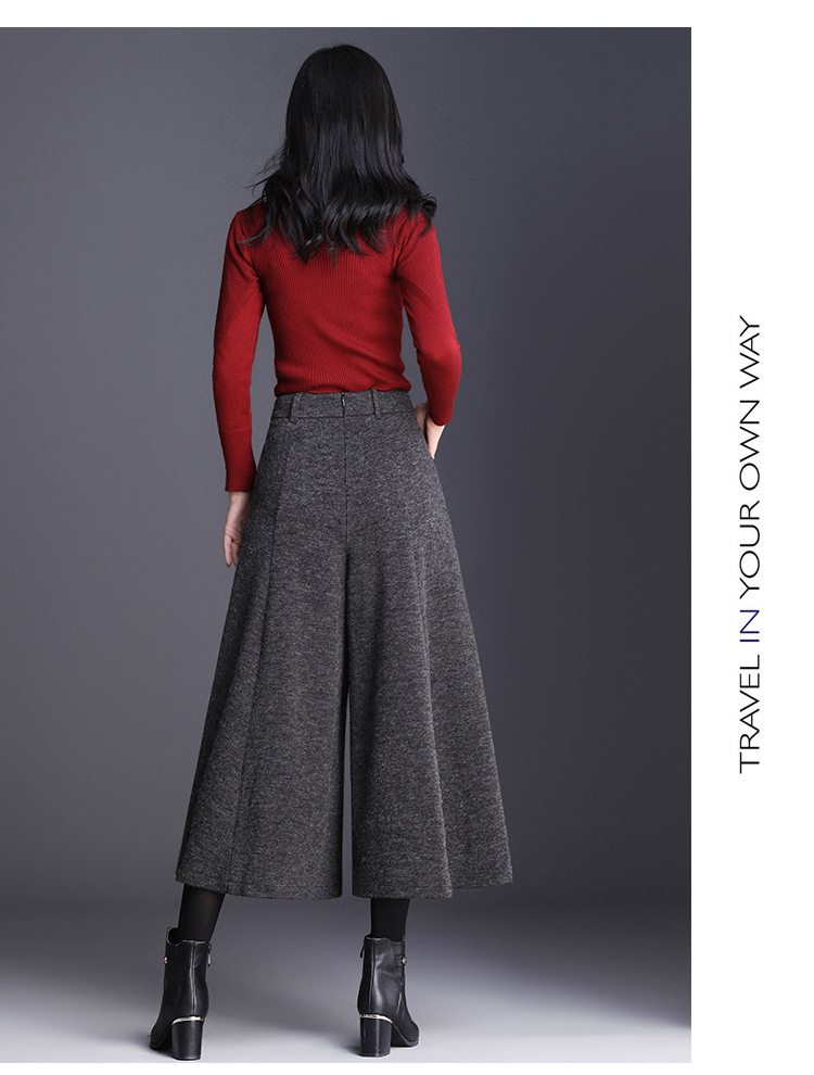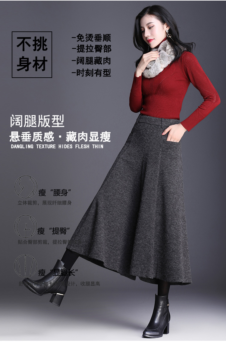 Брюки Real Shot Женские широкие брюки Осень-зима Новые шерстяные брюки Брюки до щиколотки Модные женские брюки в гонконгском стиле Брюки для метания ног Женские расклешенные брюки