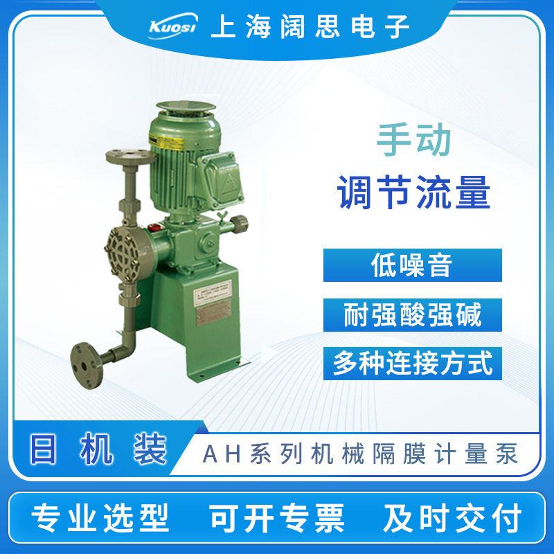 ◆NIKKISO计量泵AH系列产品特点:产品小巧,有多种计量规格和型号可供选择。产品结构由微型电机传动,卧、立式安装,单、双隔膜工作方式。