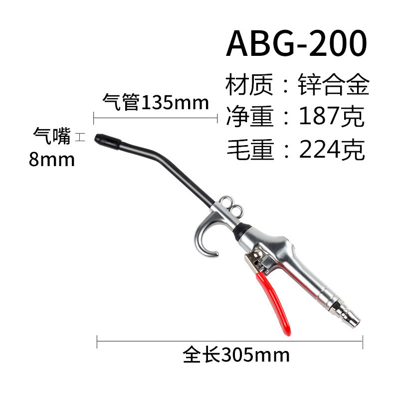 Пистолет алюминиевого сплава ABG100 дуя (140 г); Пистолет сплава цинка ABG200 дуя (187g); ABG300 цинкового сплава пыли дуя пистолет; ABG400 цинкового сплава пыли дует пистолет; Пистолет для выдувания пыли из алюминиевого сплава ABG500 Телескопический (210 г); ABG600 цинковый сплав Телескопический пистолет для выдувания пыли (263G)