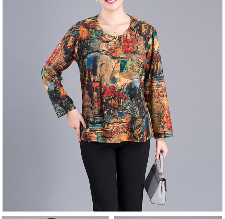Футболка с длинными рукавами для женщин среднего и пожилого возраста, новинка весны и осени, Свободный Топ больших размеров с принтом для мамы 50-90 лет, 2020