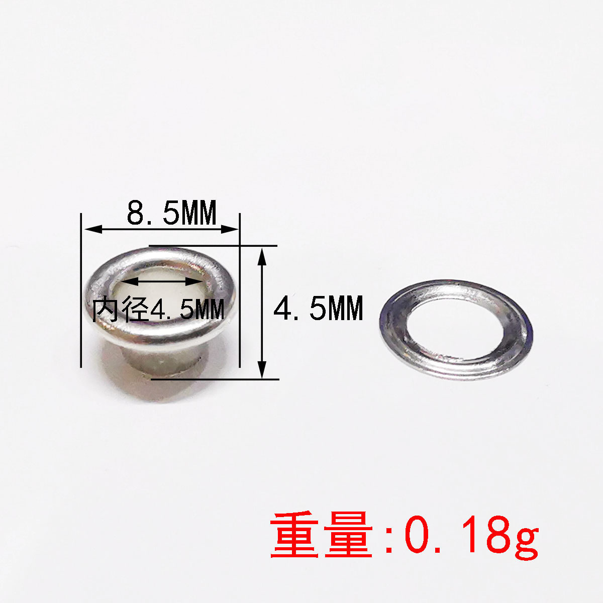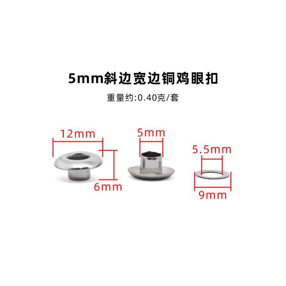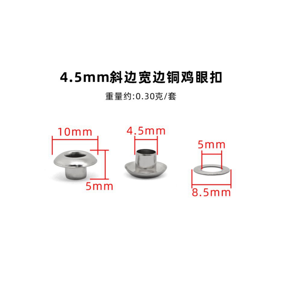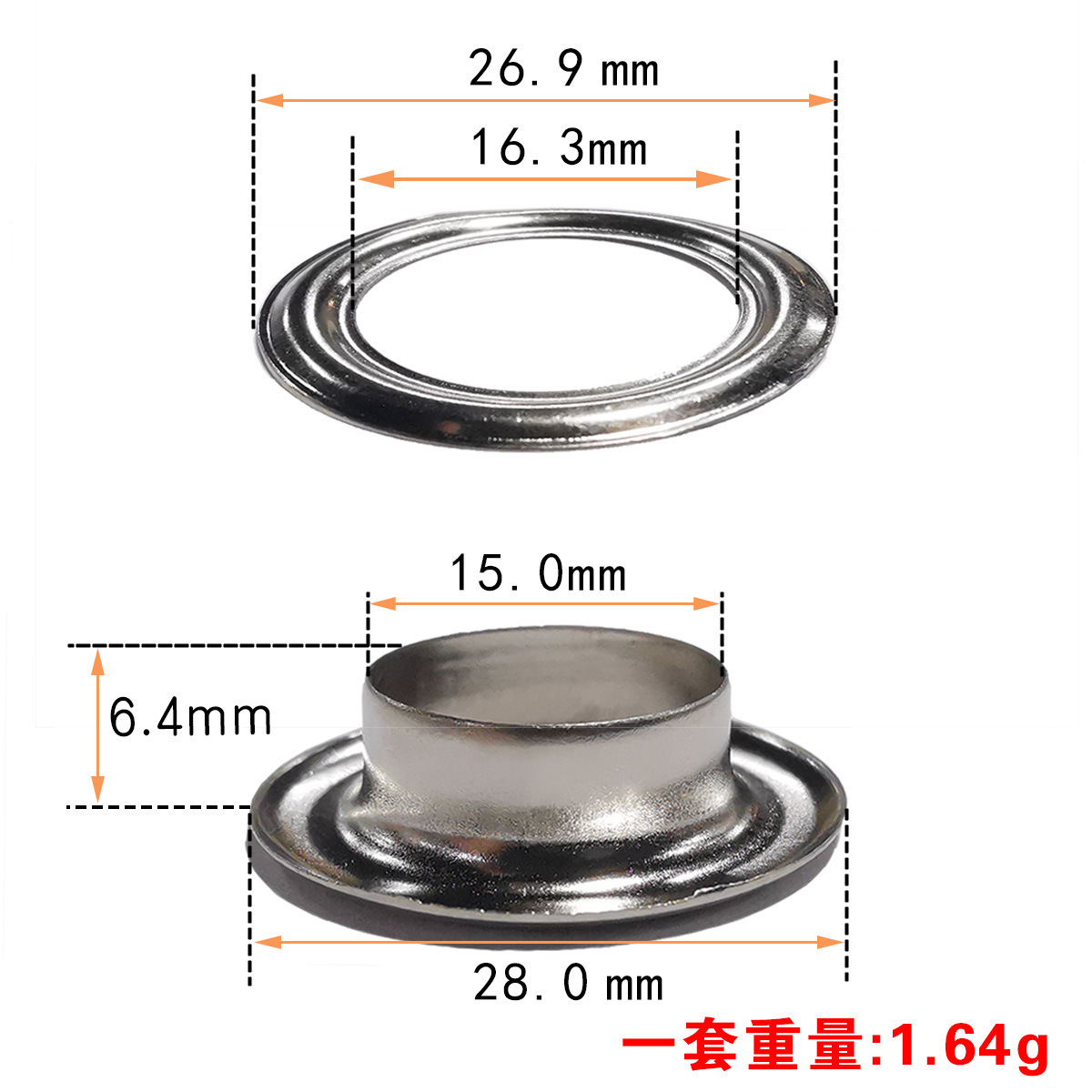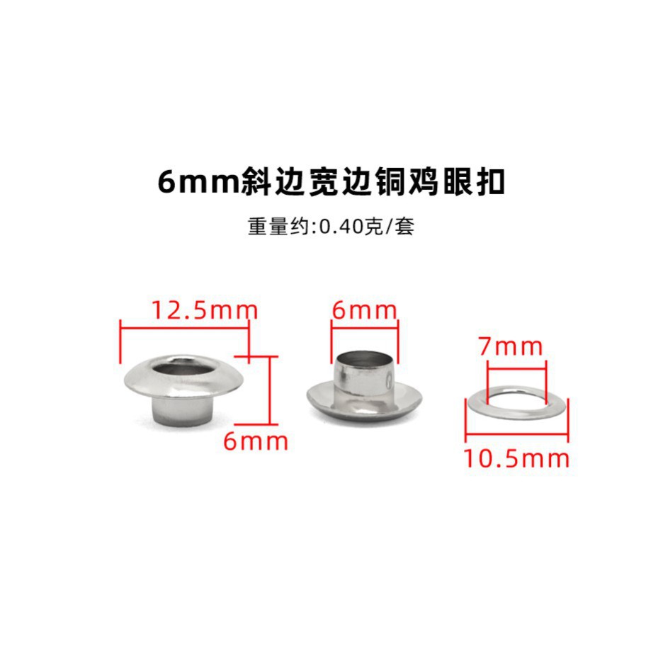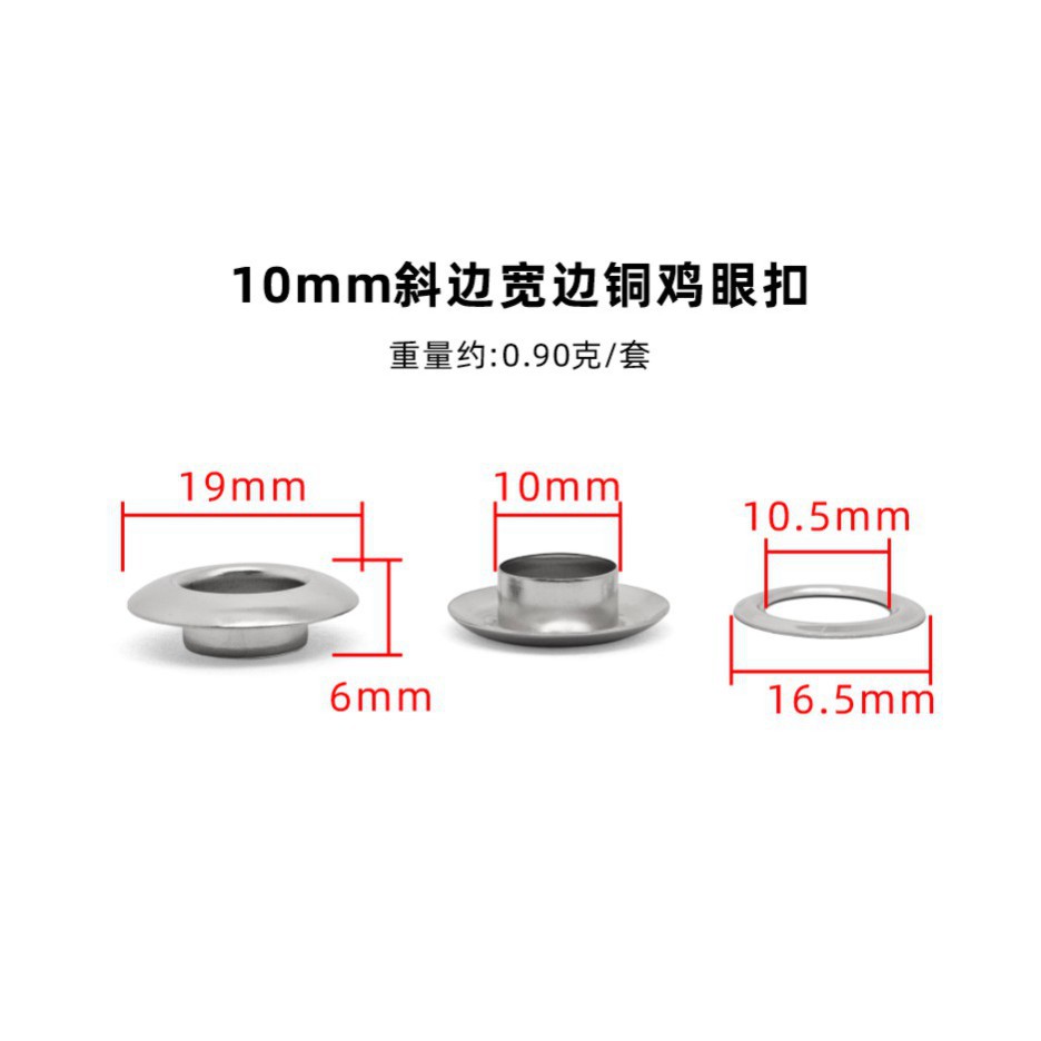 | 国标号 | 内径d1 | 外径dk | 总高度 | 鸡眼重量 | 垫片重量 | 一套重量 | 彩色鸡眼 | 圆边铁鸡眼 | 圆边铜鸡眼 | 压边鸡眼铜 |