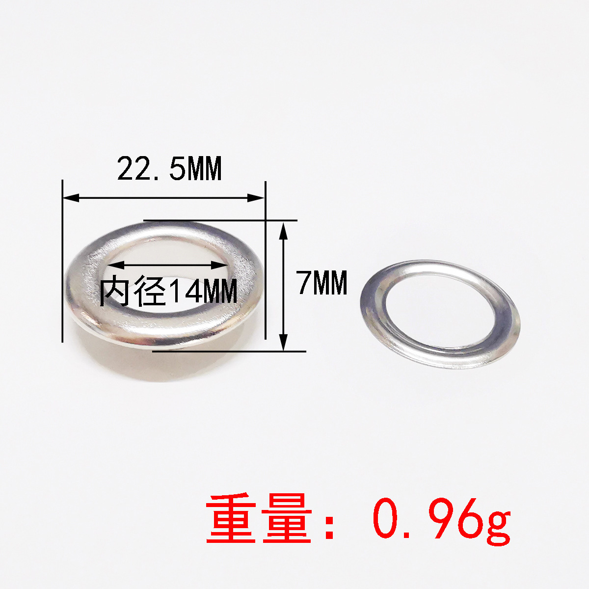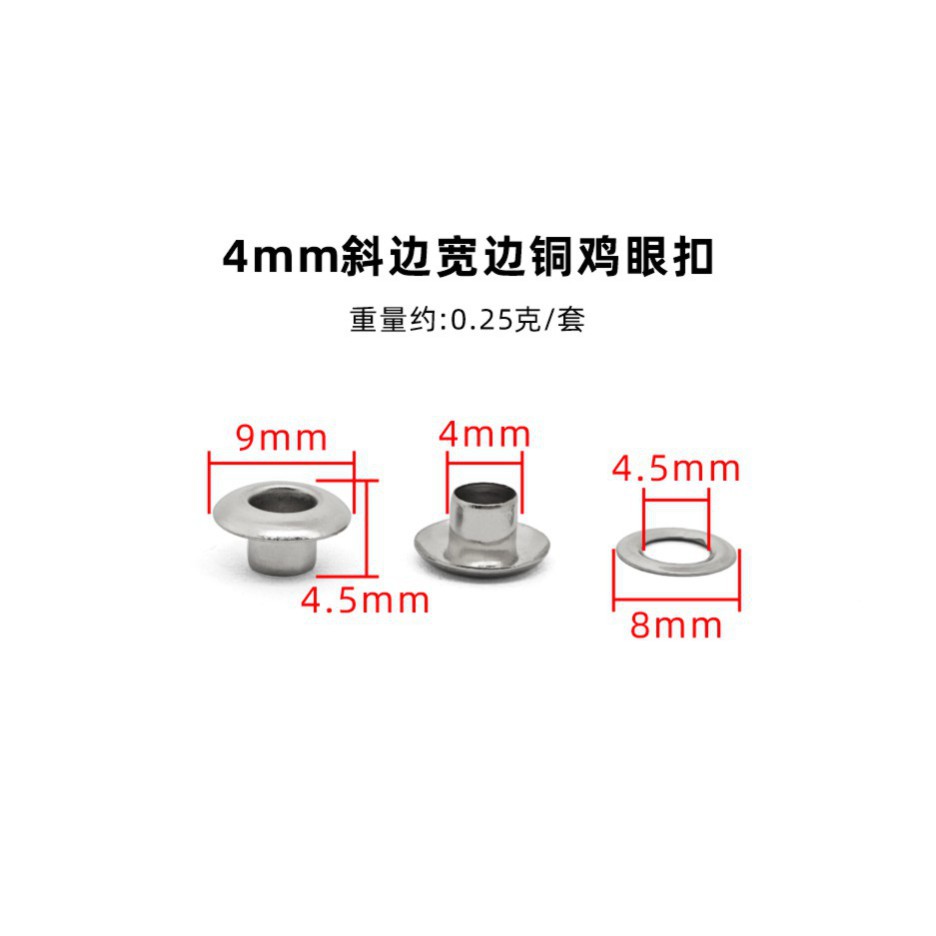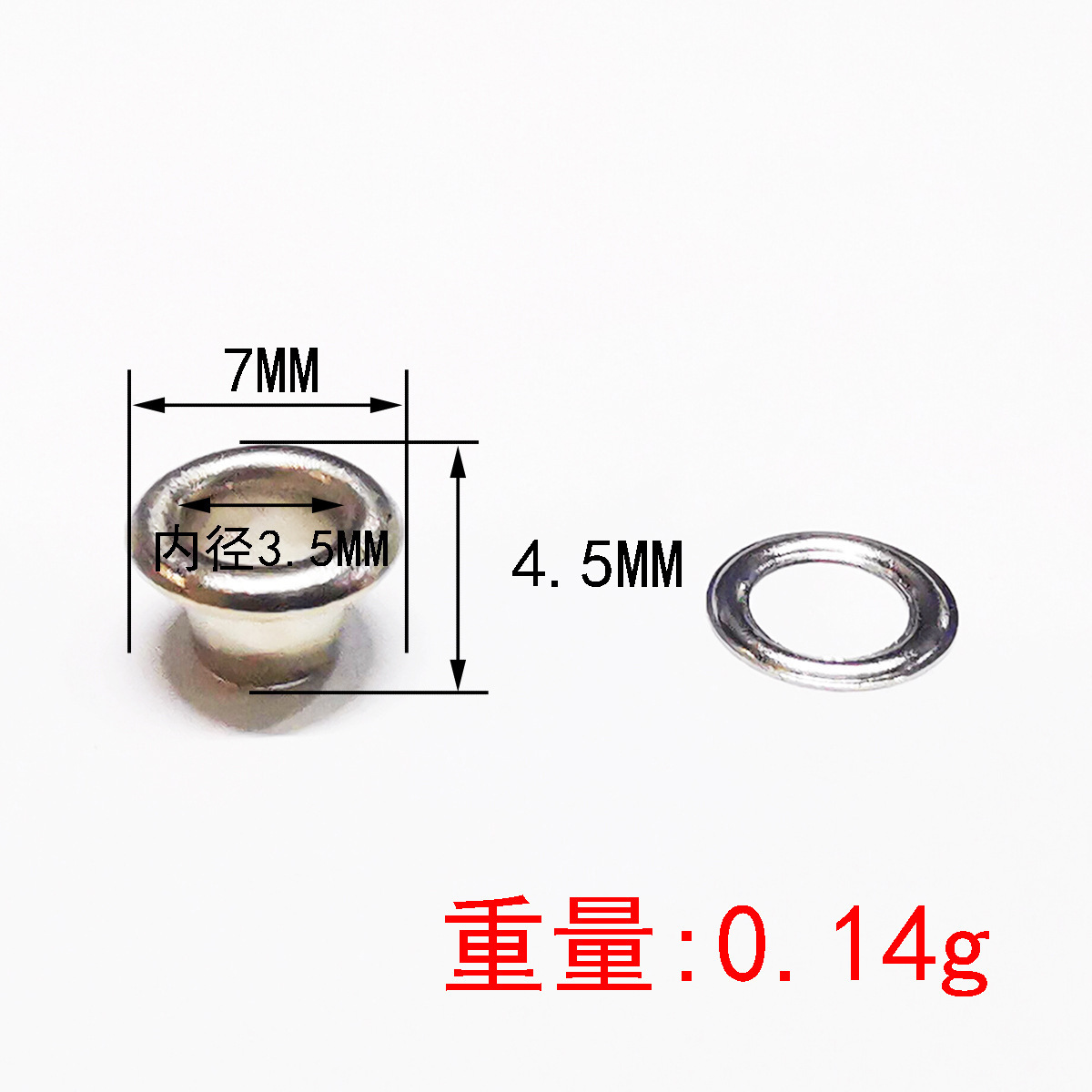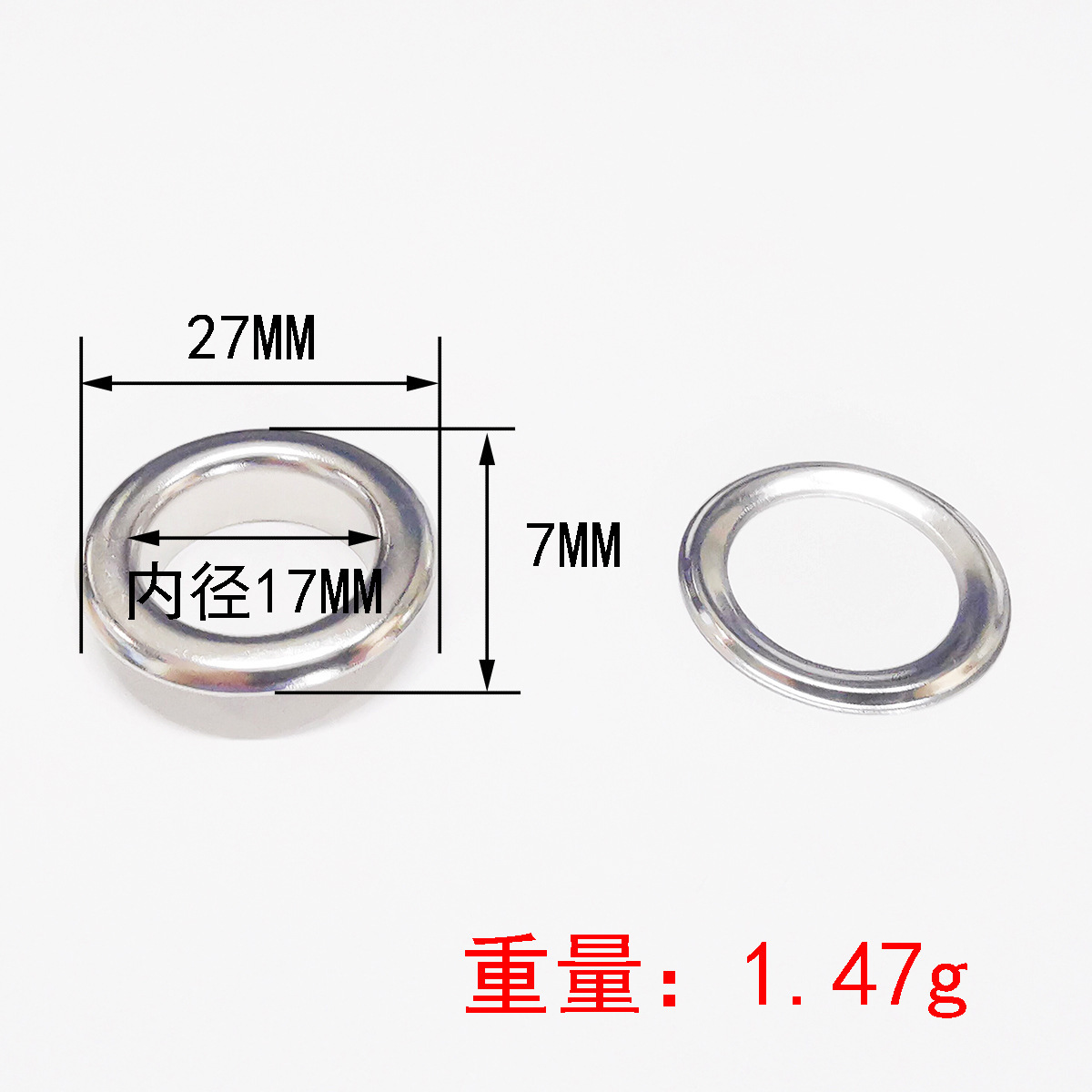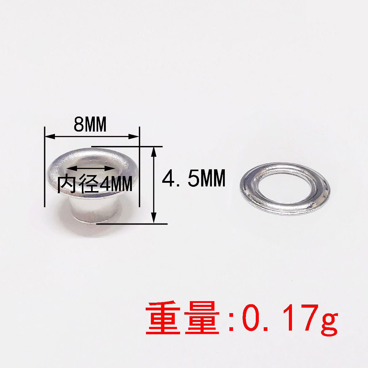 | 国标号 | 内径d1 | 外径dk | 总高度 | 鸡眼重量 | 垫片重量 | 一套重量 | 彩色鸡眼 | 圆边铁鸡眼 | 圆边铜鸡眼 | 压边鸡眼铜 |