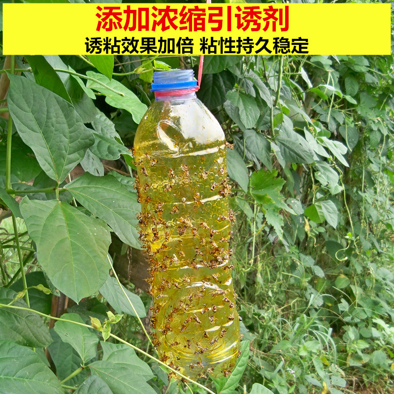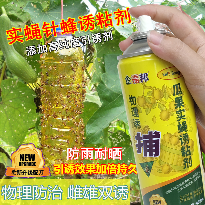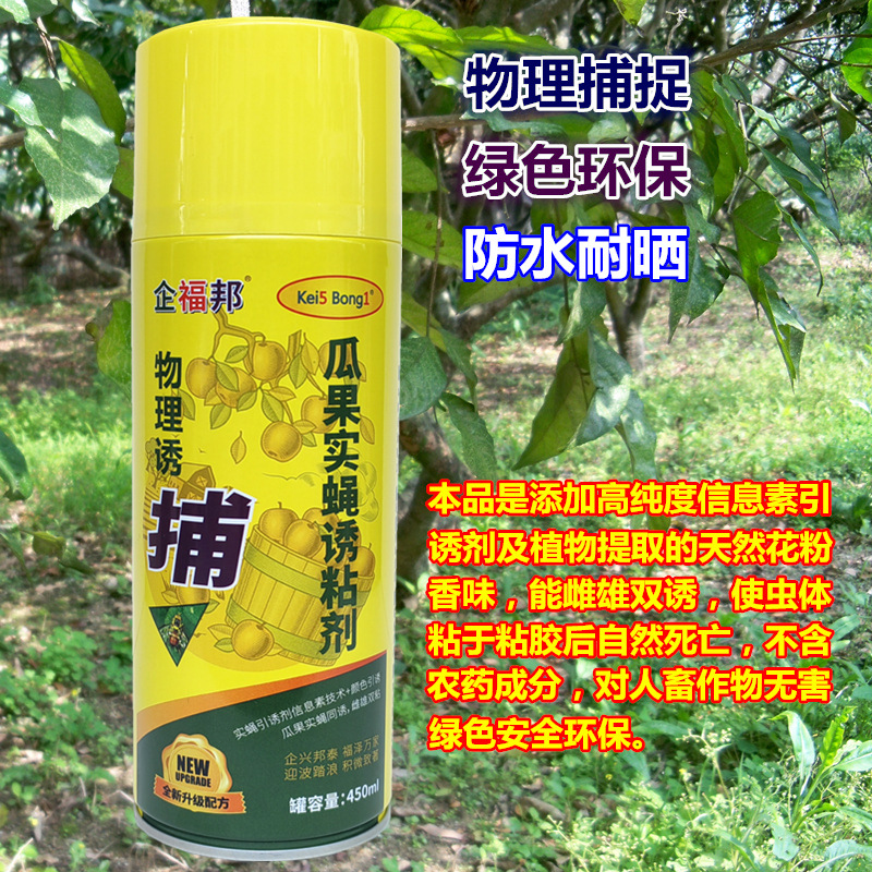 使用说明:对实蝇(又称针蜂、驻果虫)具有显著效果,适用于柑橘、番石榴、脐橙、青枣、芒果、杨桃、西瓜、丝瓜、苦瓜等多种瓜果。利用该粘剂内所含的实蝇引诱剂引诱实蝇的成虫飞来,使虫体粘捕在喷在基材上的粘剂上,数小时后自然死亡。
