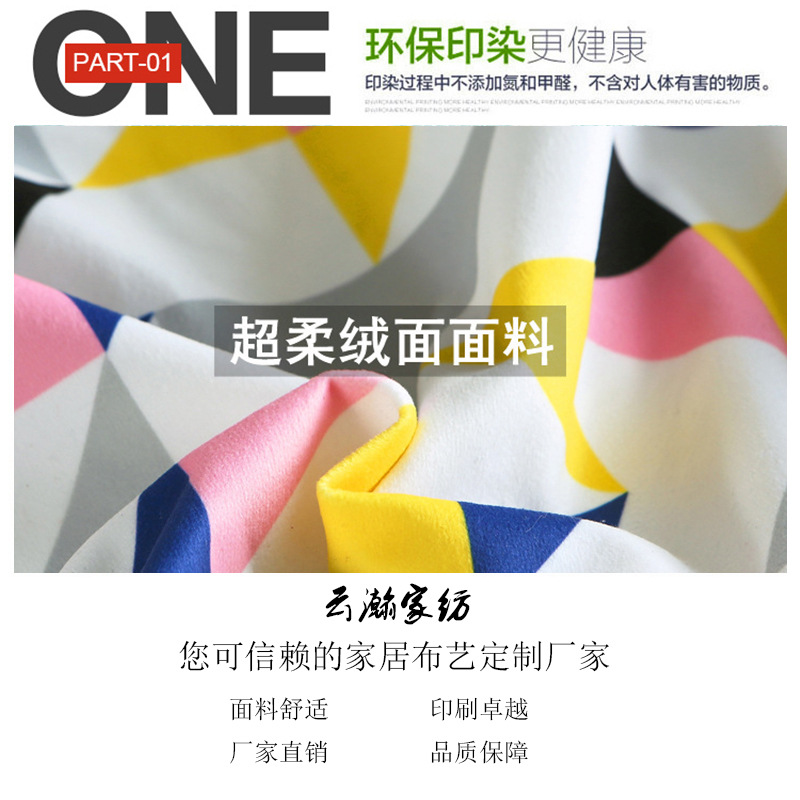 1、正面为数码印花图案,背面为布料素色。