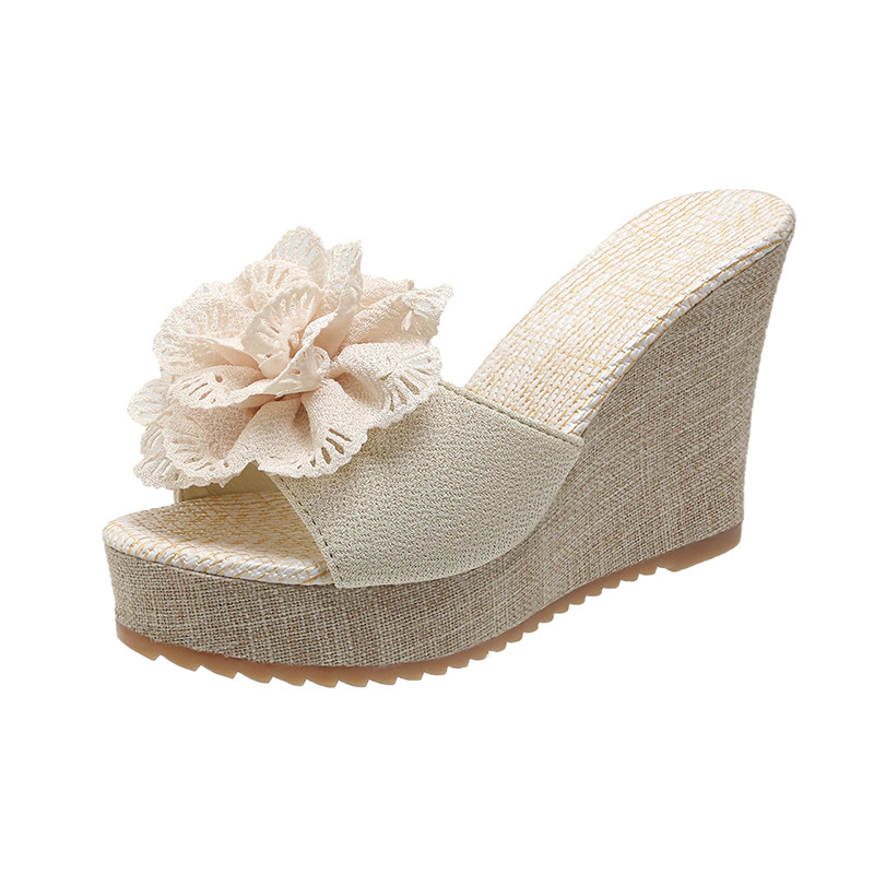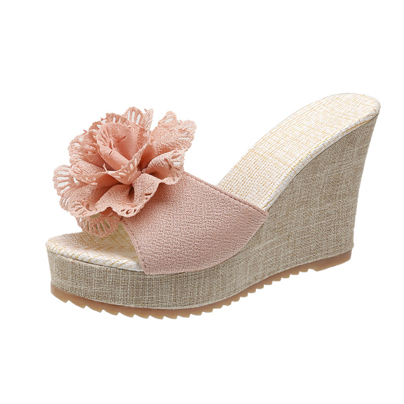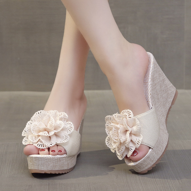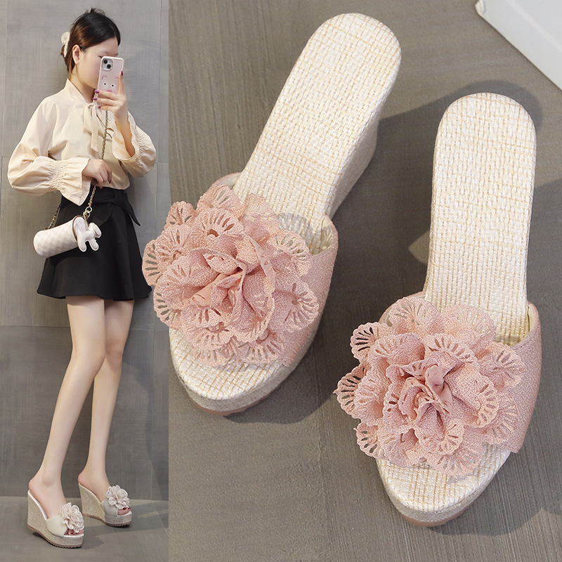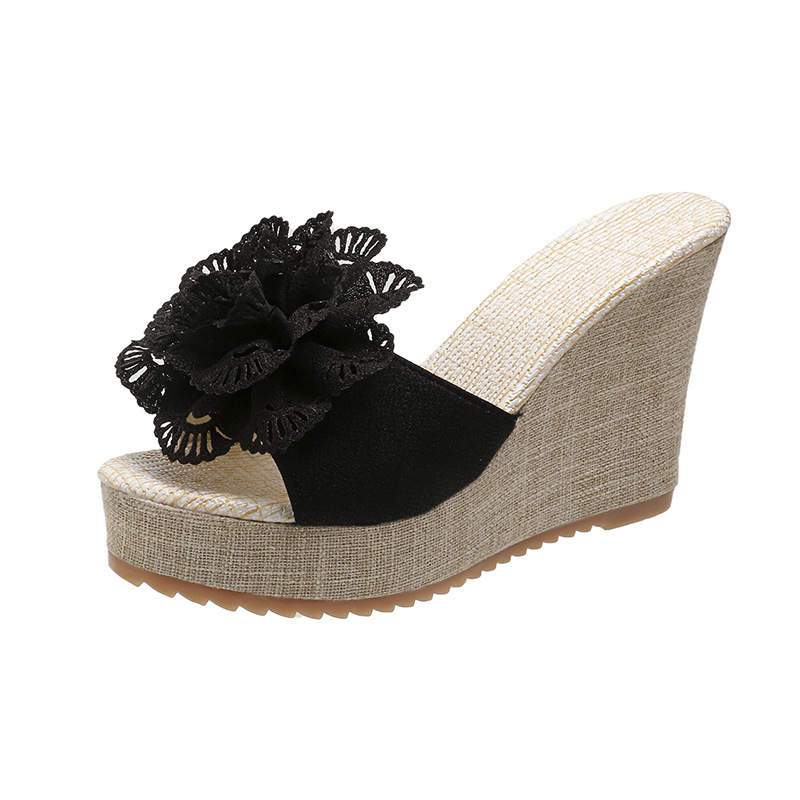 Женские сандалии больших размеров 2025 года, летние, с открытым носком, на танкетке, замшевые, с цветочным принтом, уличные, на платформе, на толстой подошве