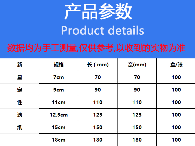 Xinxing Качественная фильтровальная бумага Фильтровальная бумага Абсорбирующая бумага Масляная фильтровальная бумага 7/9/11/12,5/15/18 см Быстрая средняя медленная
