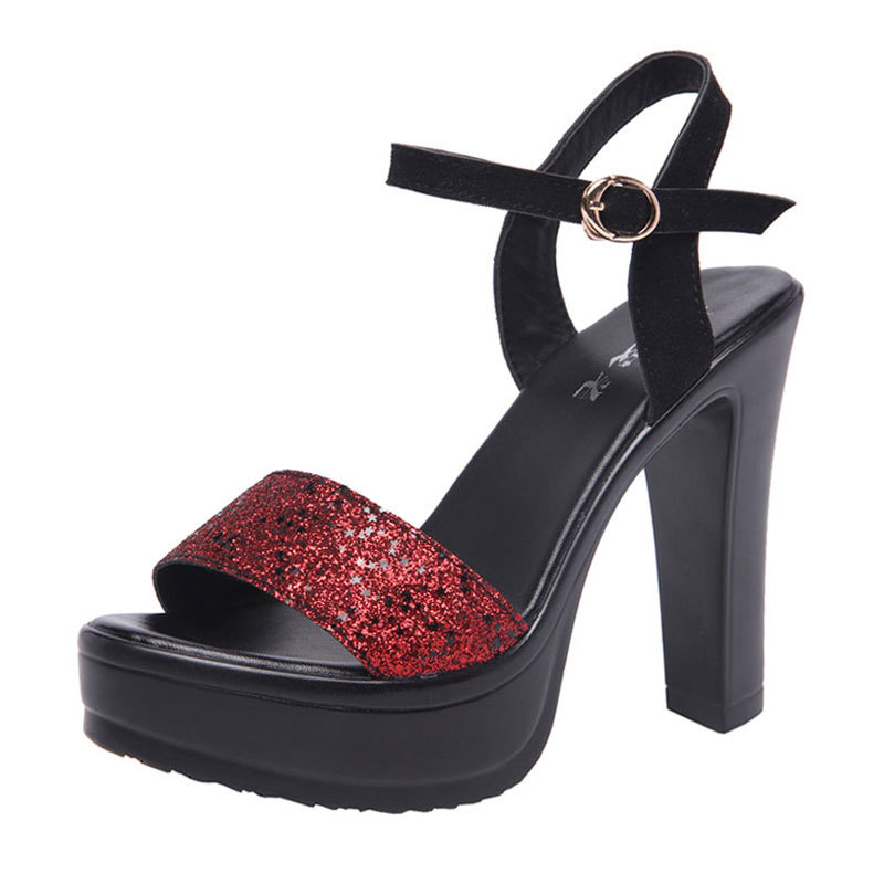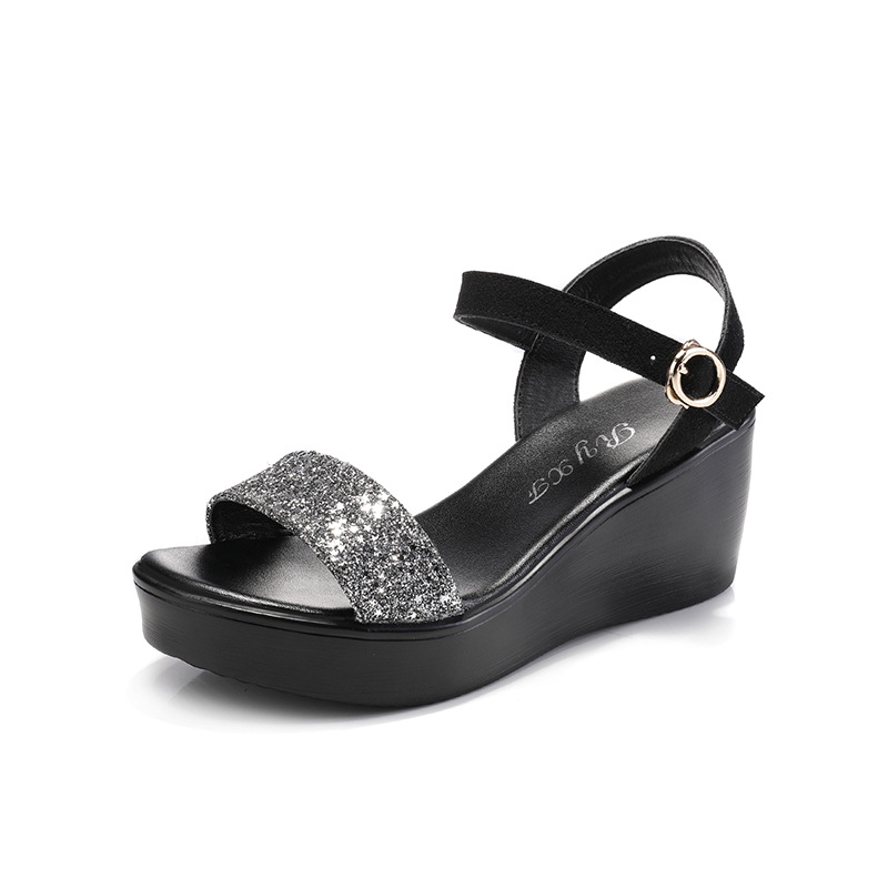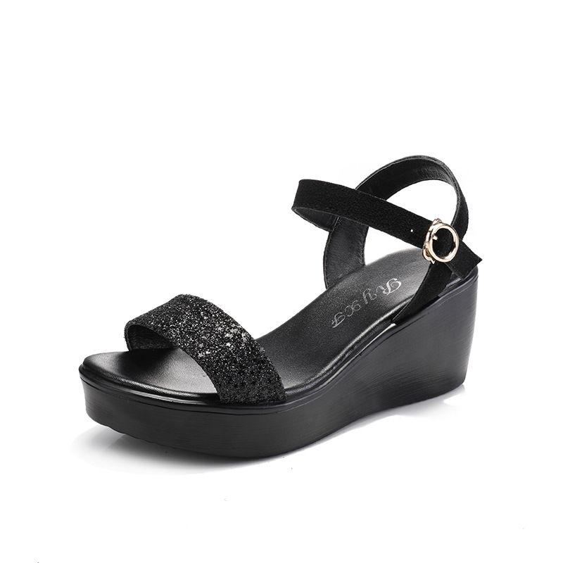 Блестки; Клиновидный каблук; Маффин на каблуке; Пряжка; Водонепроницаемая платформа