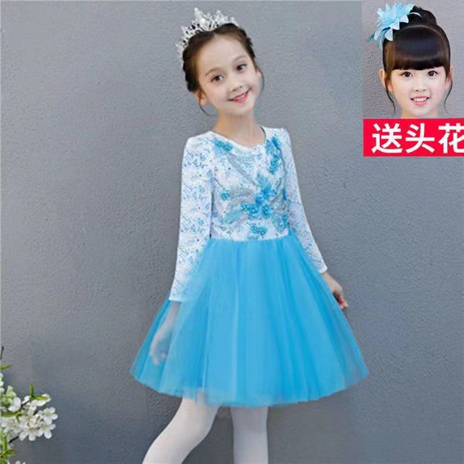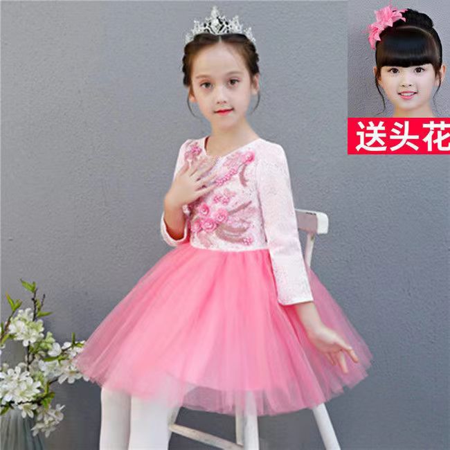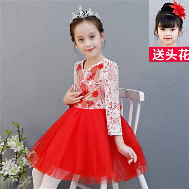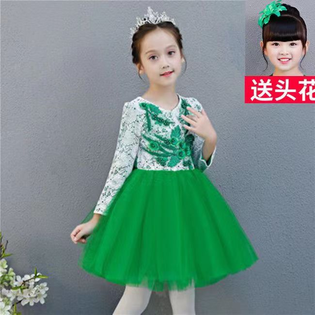 Новогодний детский праздничный костюм для хора для мужчин и женщин, платье с блестками, платье принцессы, вуаль, платье для выступлений в китайском стиле