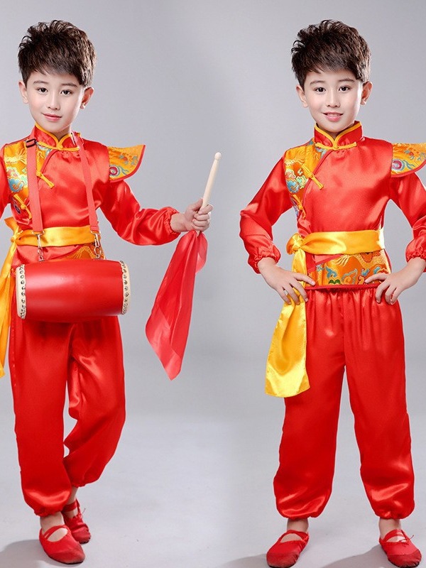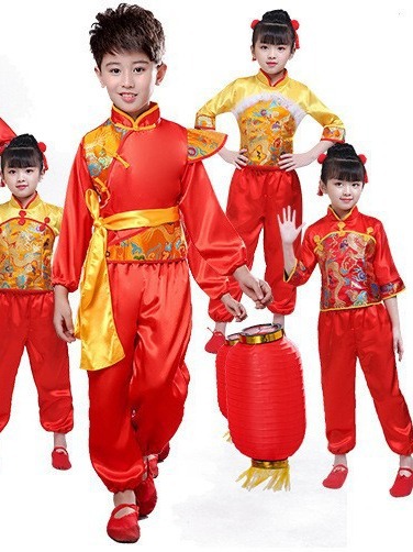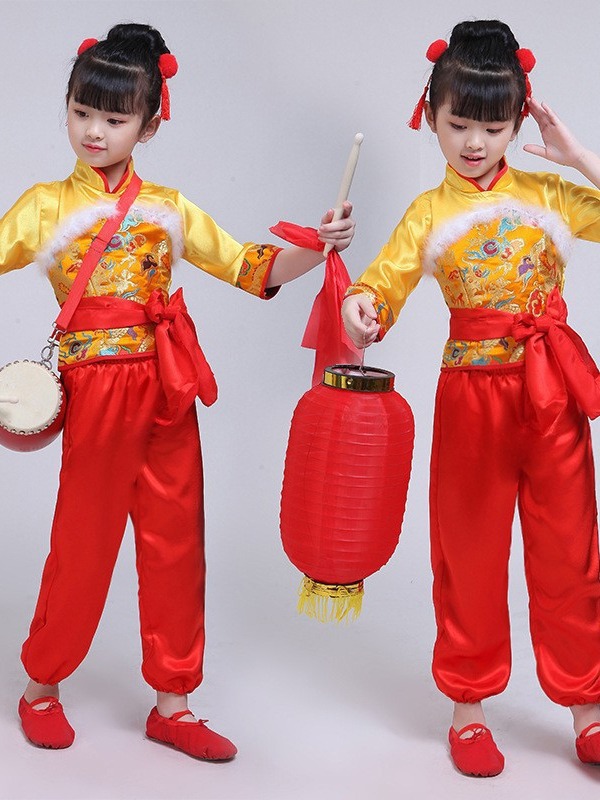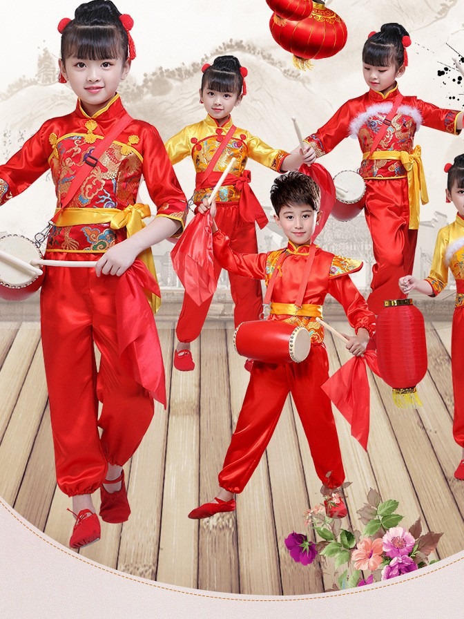 Детский новогодний праздничный барабанный костюм, мужской и женский костюм с китайским узлом, костюм Янко, пусковый фонарь, танец льва, костюм для танцевального представления