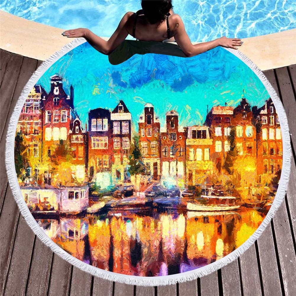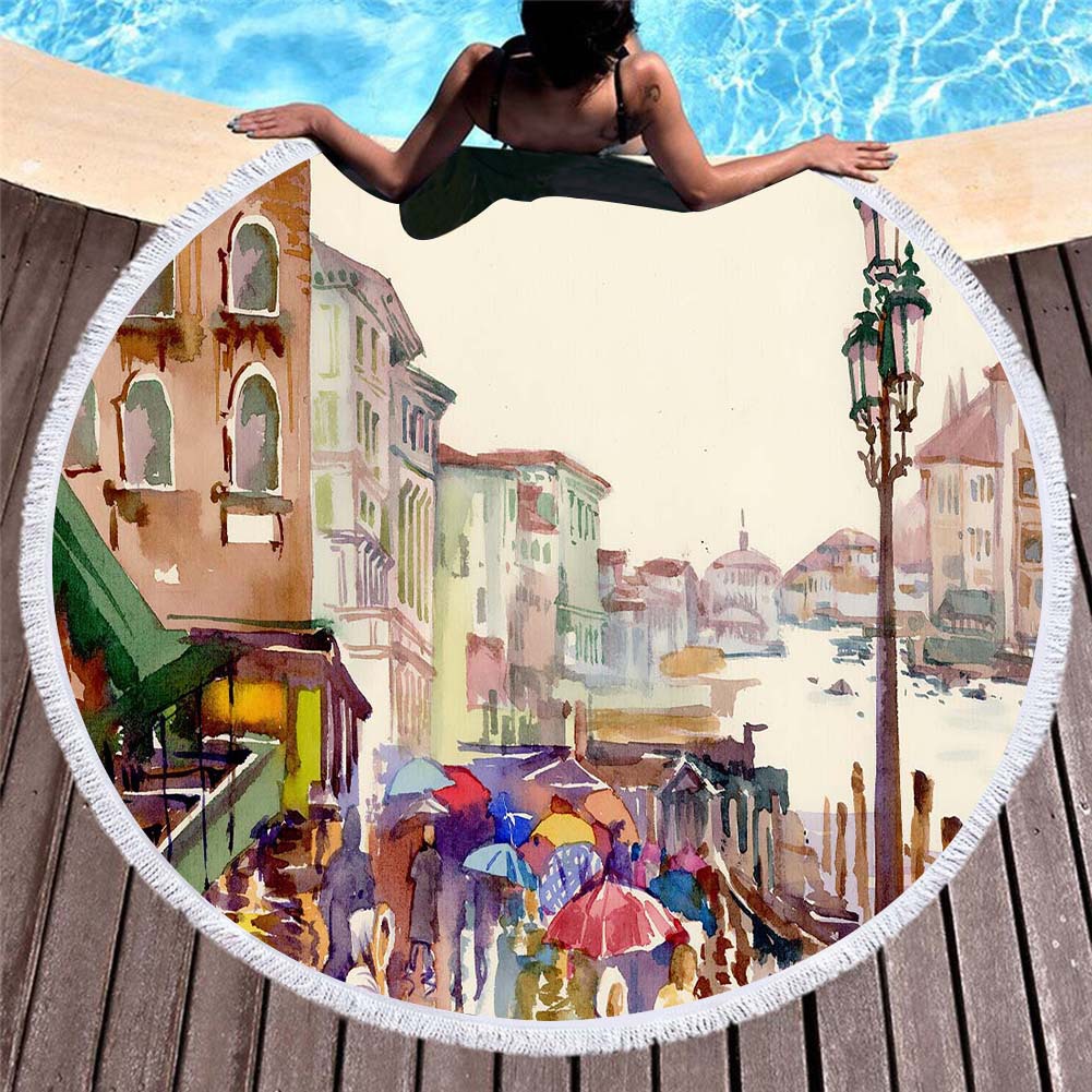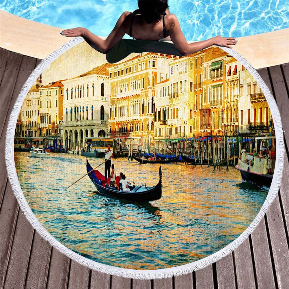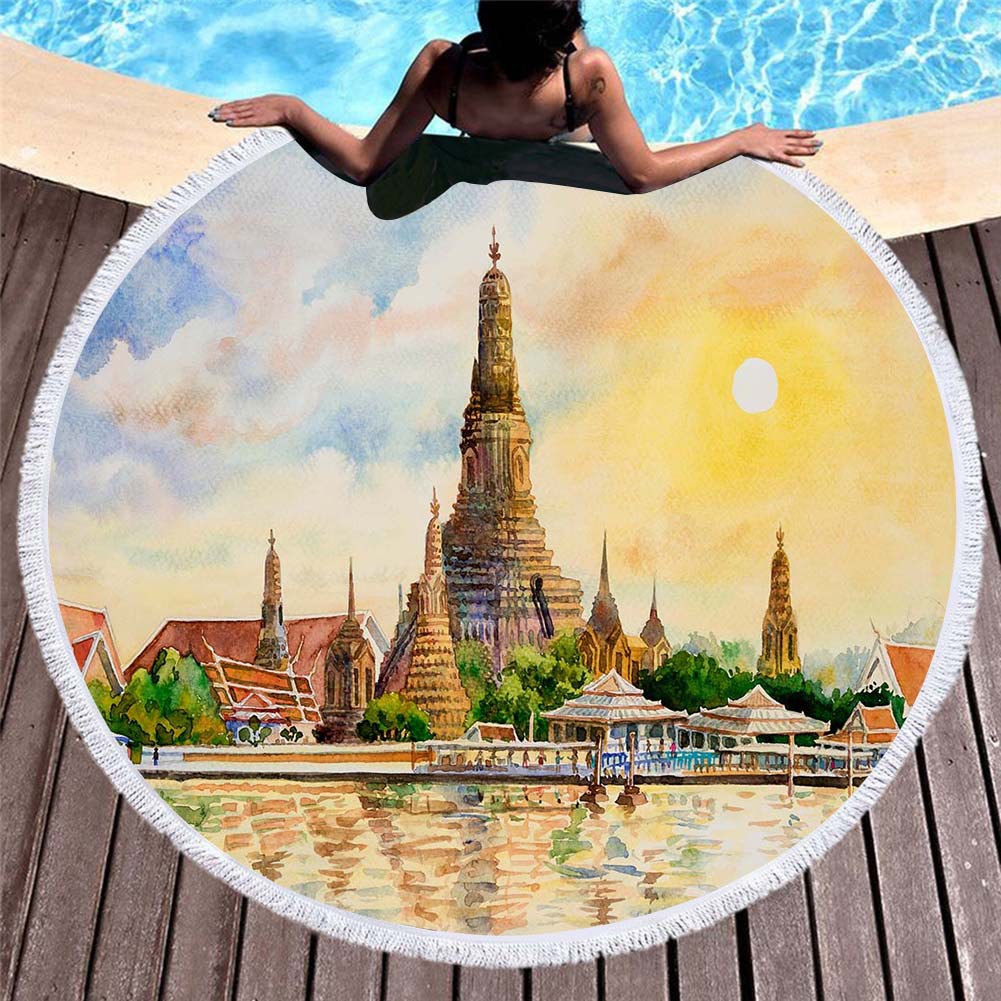Вышивка Европейская и американская 3D цифровая печать известное здание пляжное полотенце из микрофибры круглый кисточкой пляжный коврик