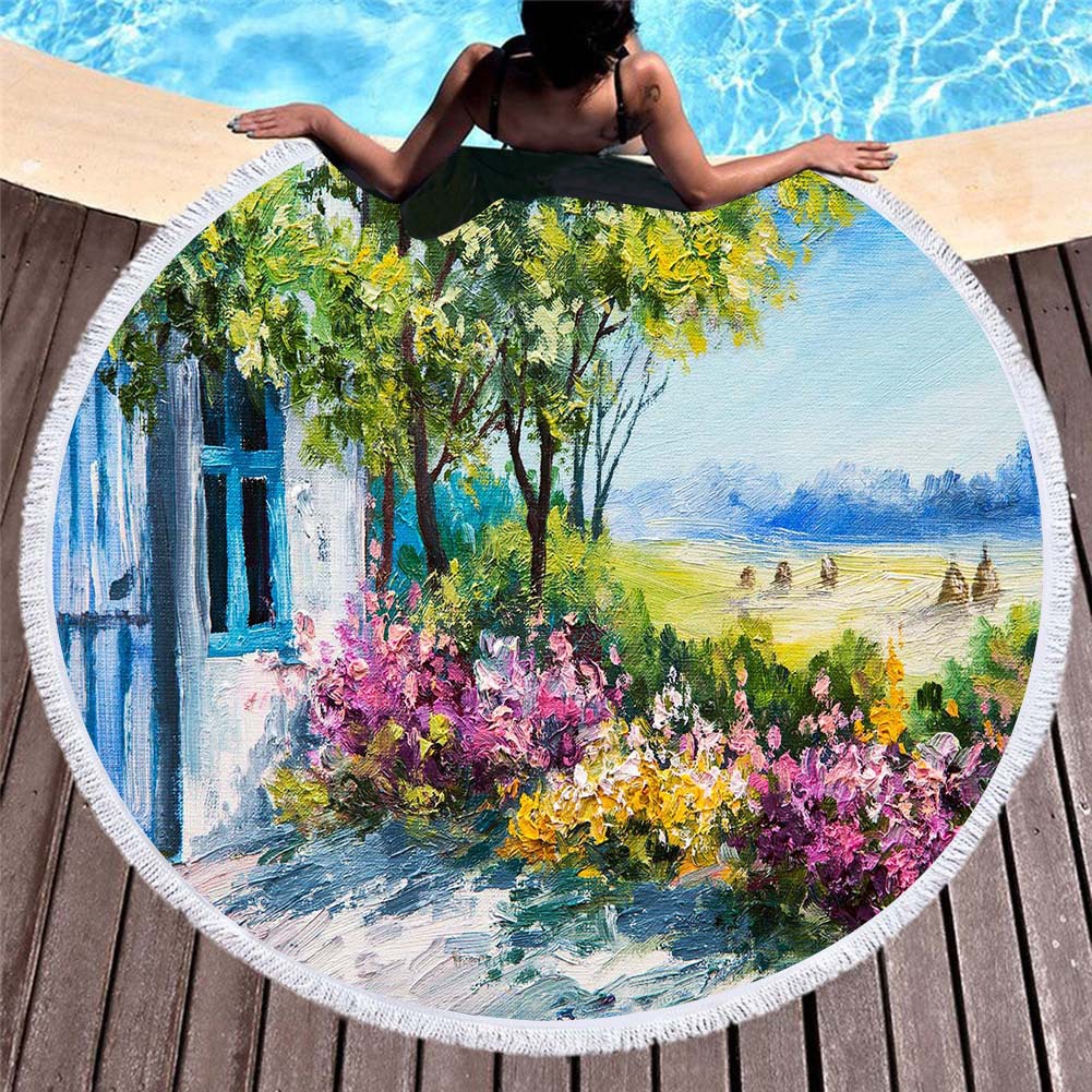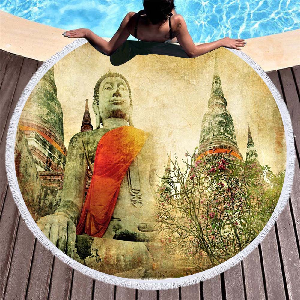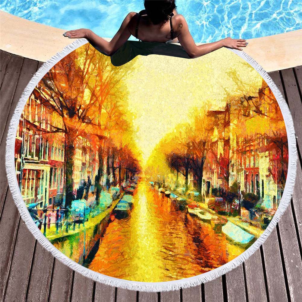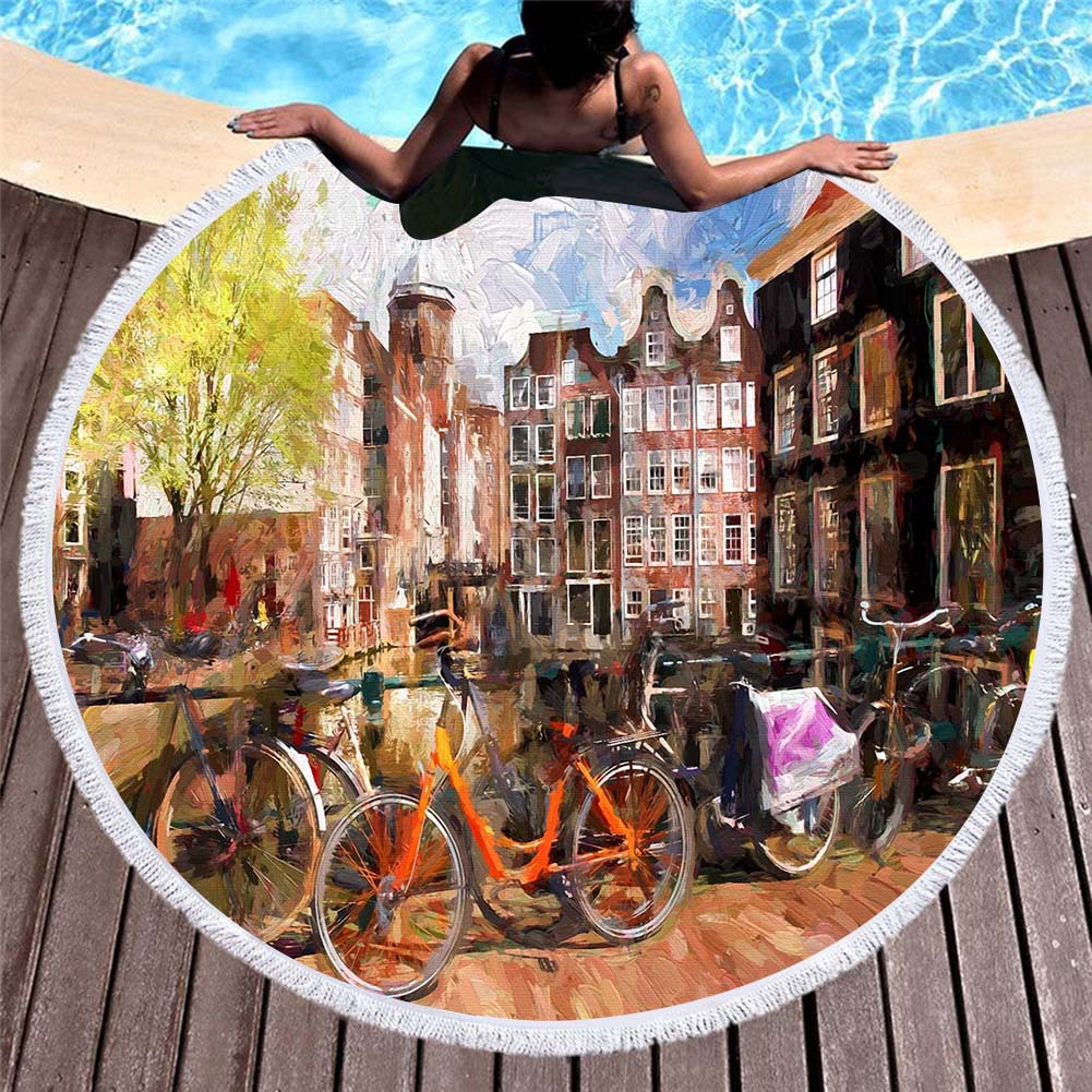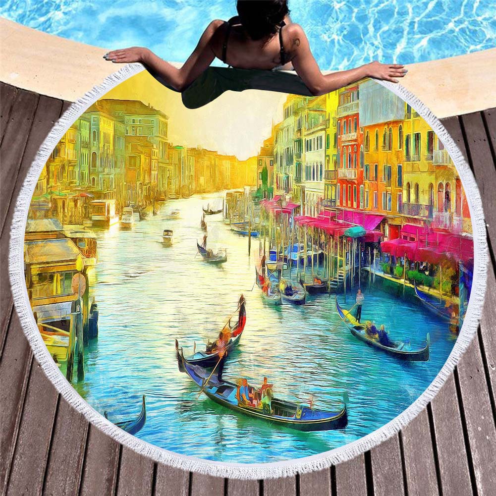 Вышивка Европейская и американская 3D цифровая печать известное здание пляжное полотенце из микрофибры круглый кисточкой пляжный коврик