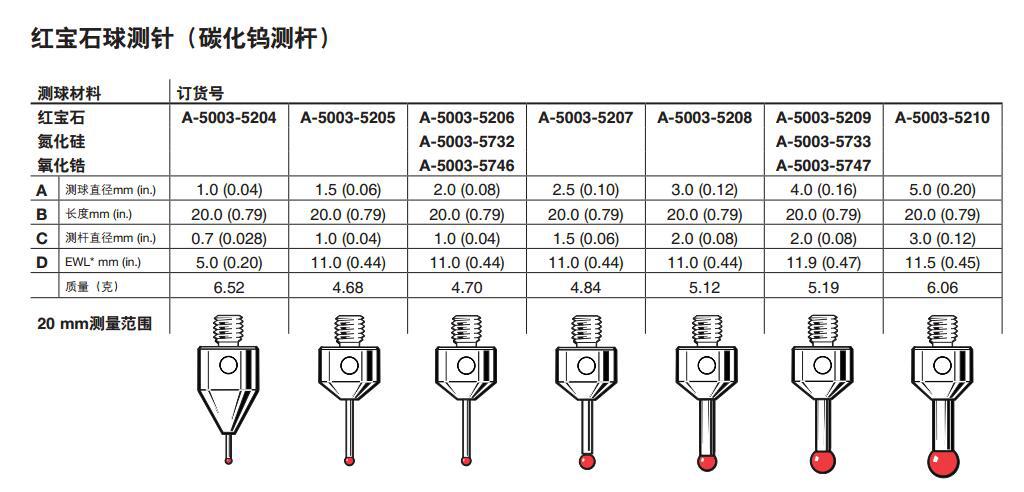 英国雷尼绍 球形测针 M5牙 碳化钨测杆