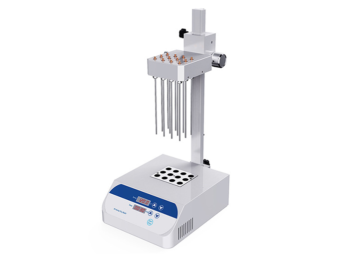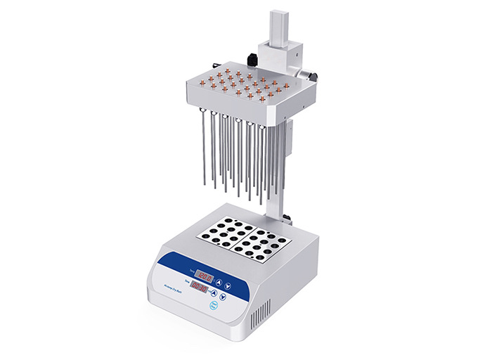 DC150 氮吹仪系列是采用微电脑处理和 PID 控制方式结合而形成的高精 度温度控制仪器 , 其工作原理是将氮气快速、连续、可控地吹到加热样品表面, 根据被浓缩溶剂的蒸发速度和沸点,设定加热温度,实现大量样品的快速浓缩。 本仪器采用铝加热模块,其传热性好、传热均匀,这利于快速加热和快速温控。 将氮气吹到样品表面,实现液体样品的无氧浓缩。