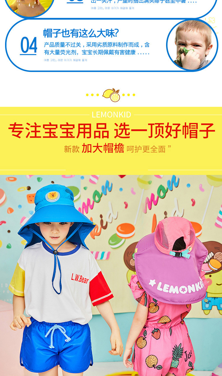 Детская шляпа Lemon Baby с большими полями, солнцезащитная шляпа, летняя шляпа с защитой от ультрафиолета, детская шляпа от солнца, оптовая продажа