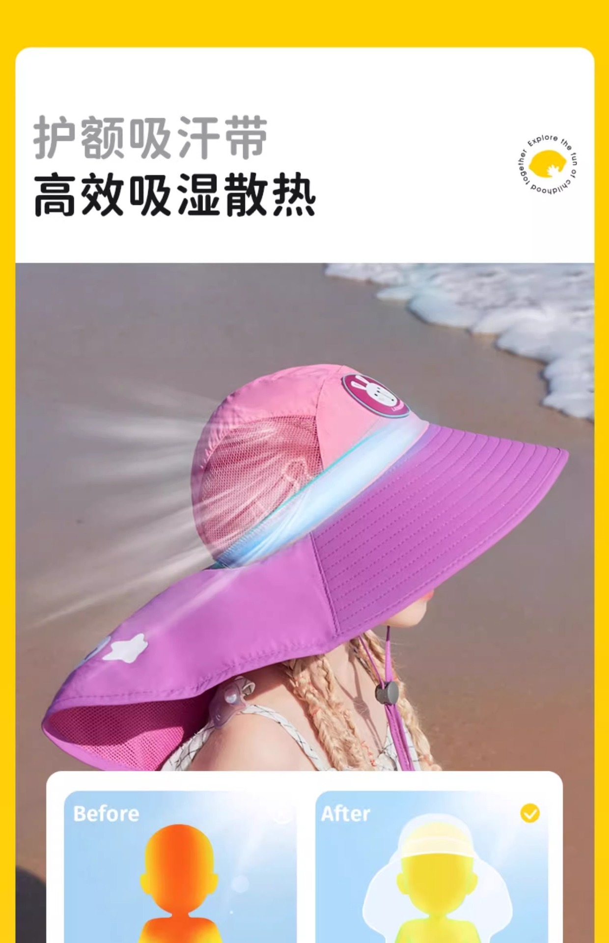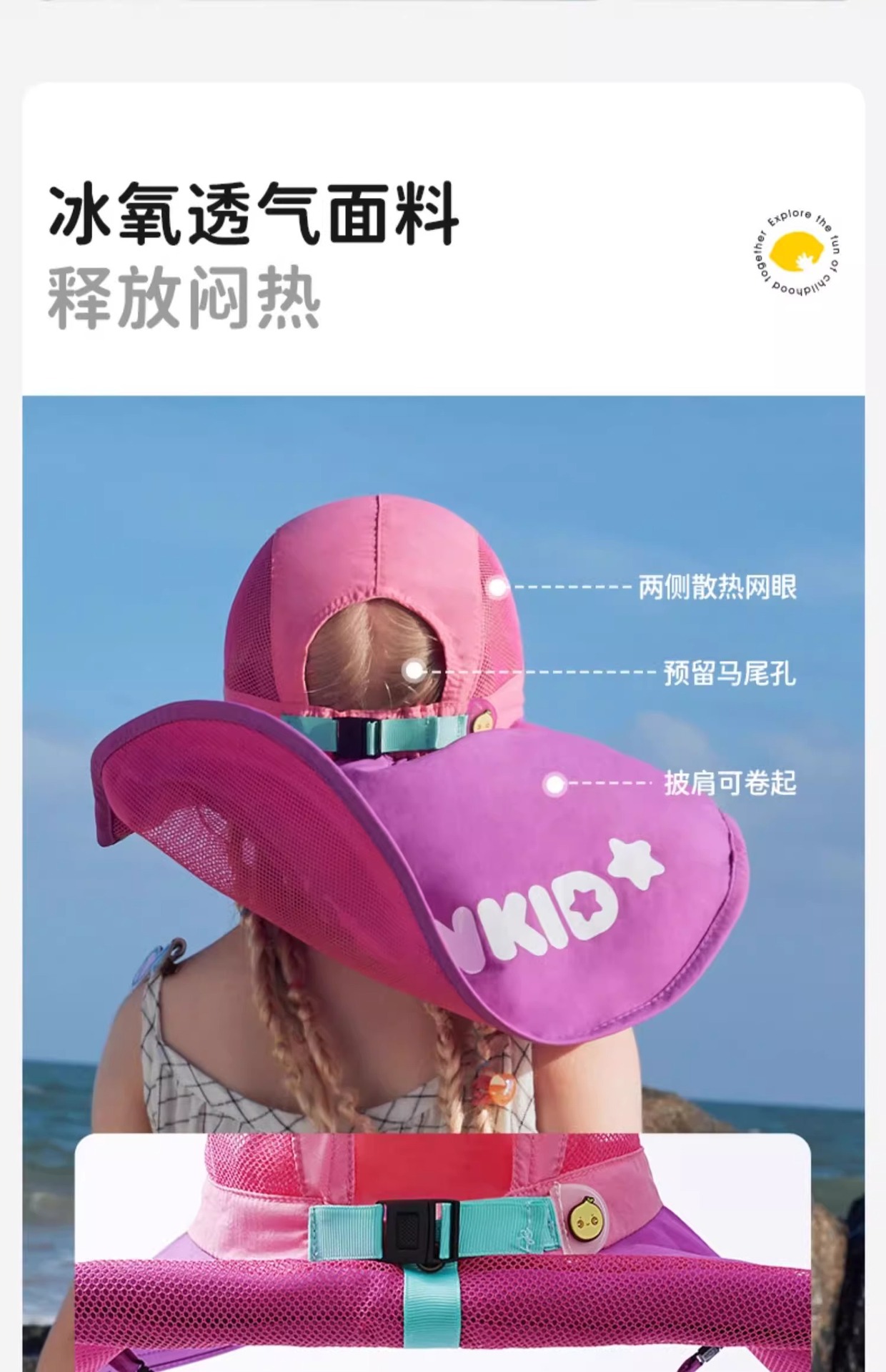 加长加大帽檐设计,超大后檐布更好呵护宝宝颈部