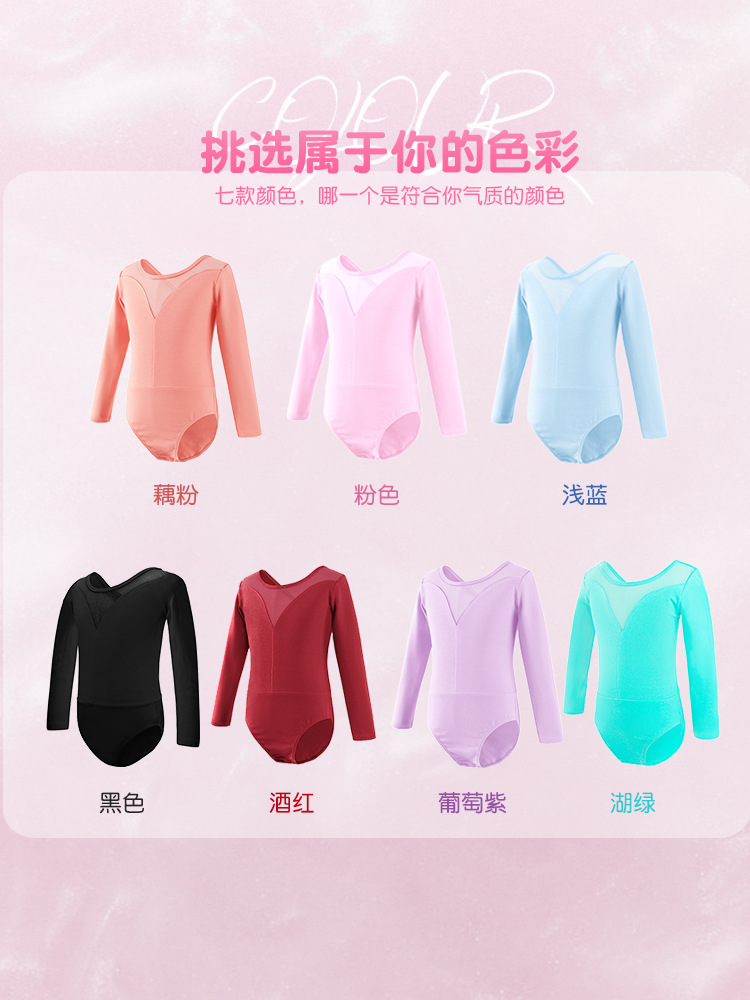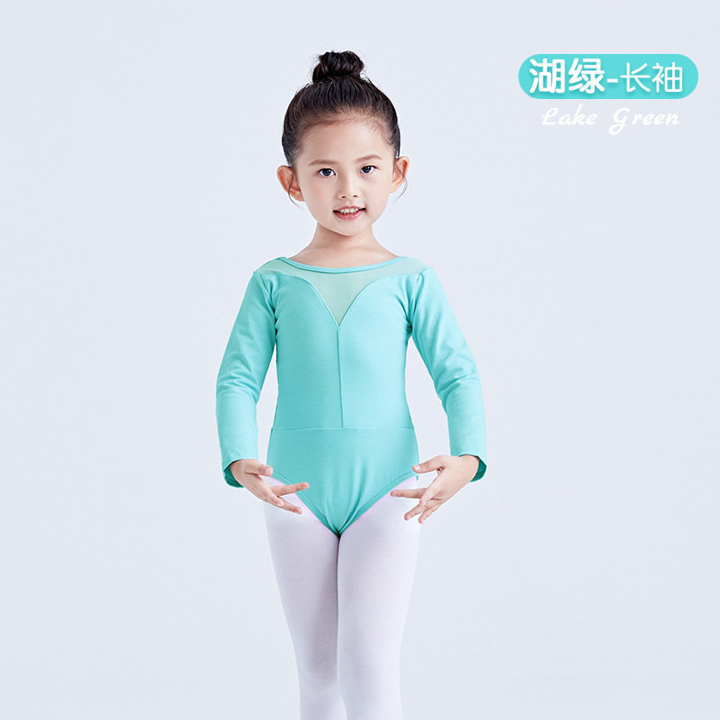 Детские танцевальные костюмы в наличии, одежда для тренировок, балетное платье для девочек, длинный рукав, сетчатый топ для латиноамериканских танцев.