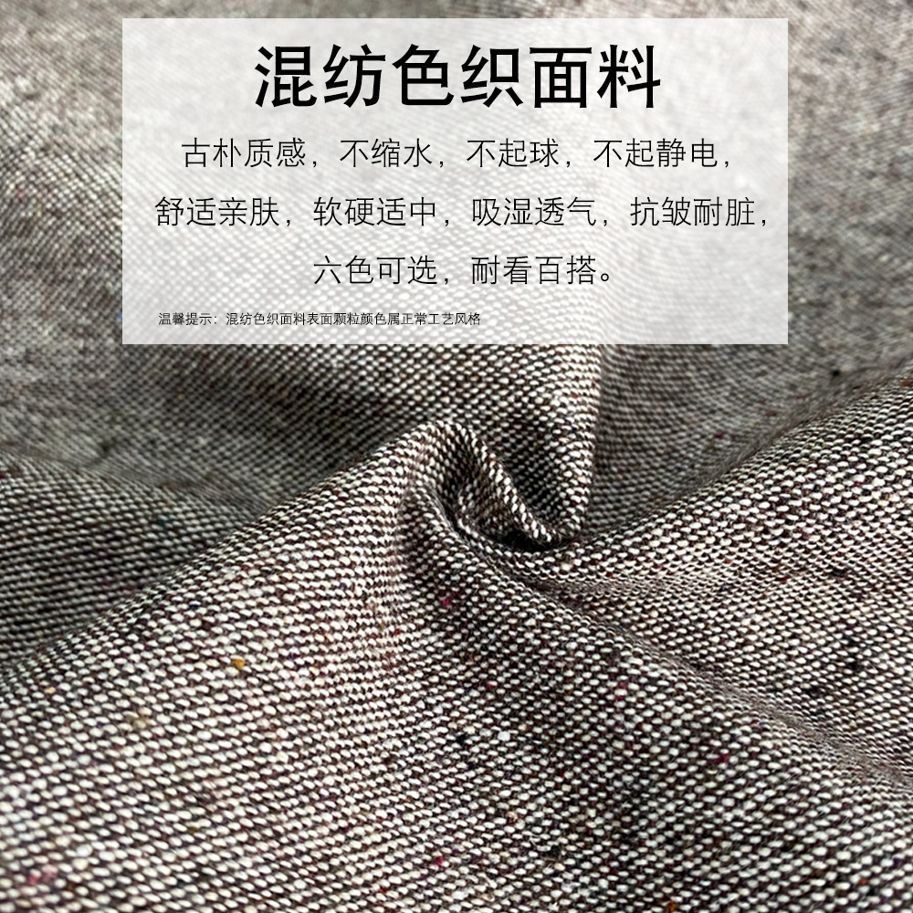 此面料混纺古朴粗犷风格,带颗粒杂色,