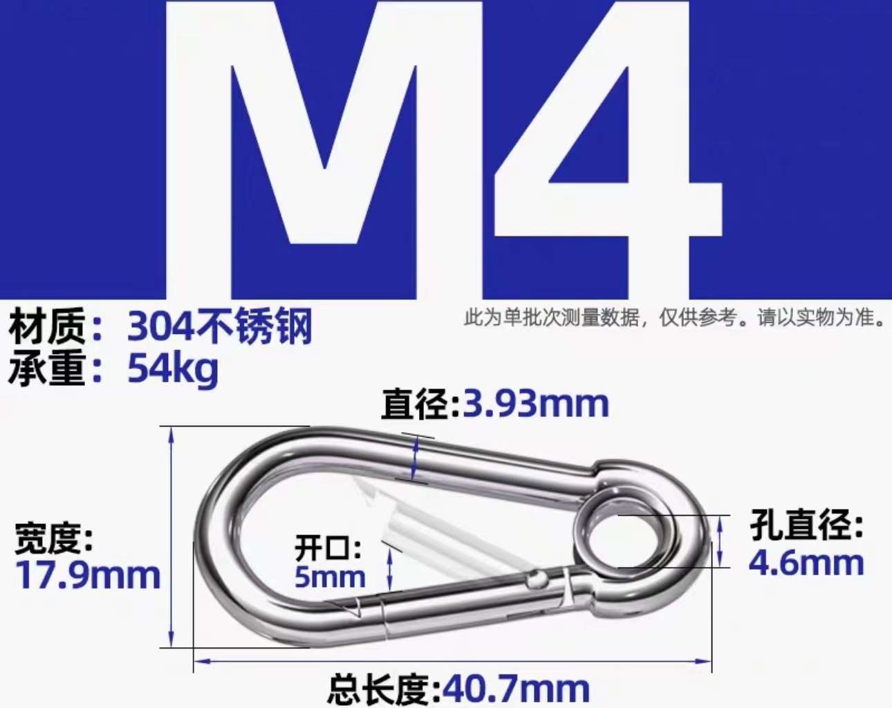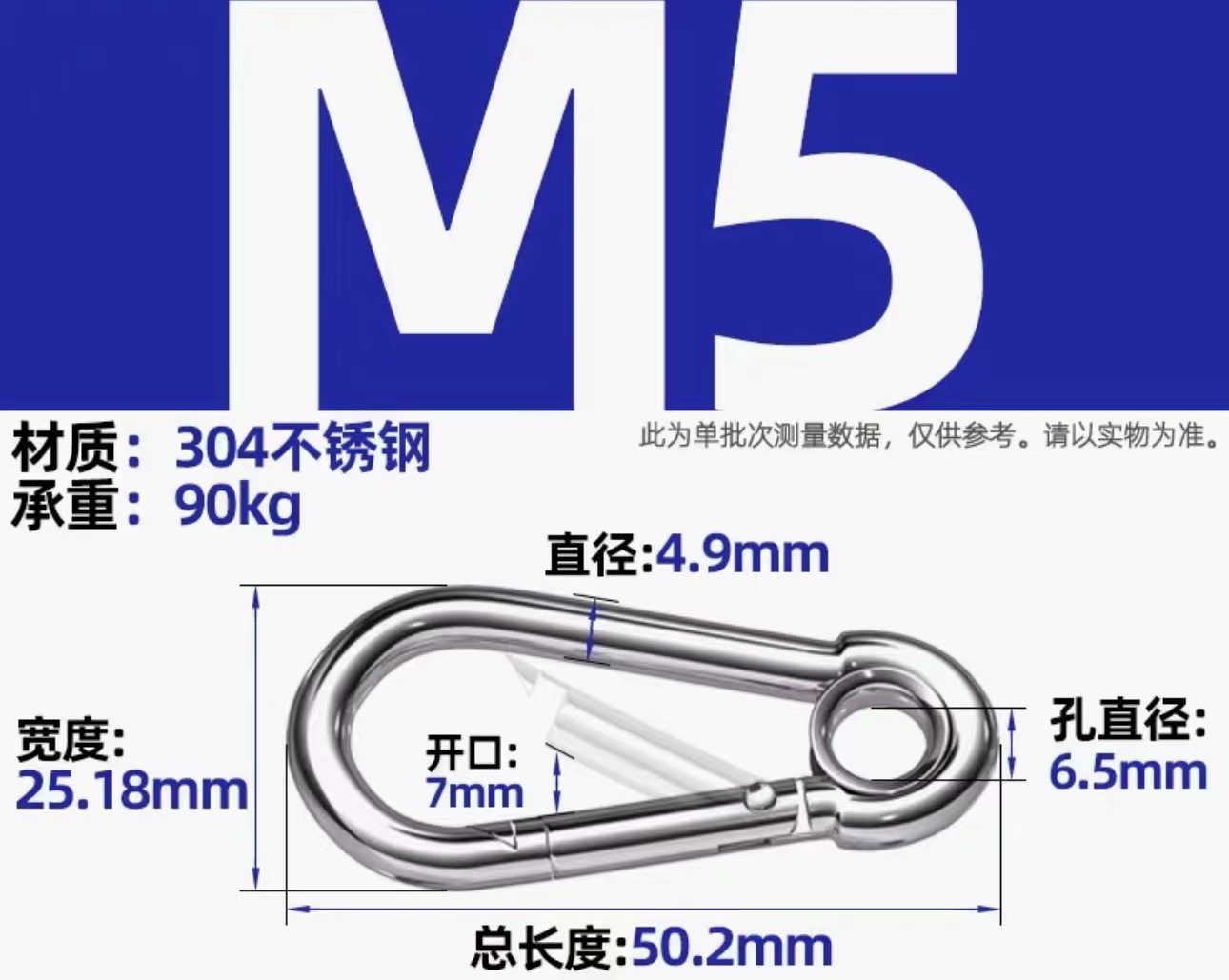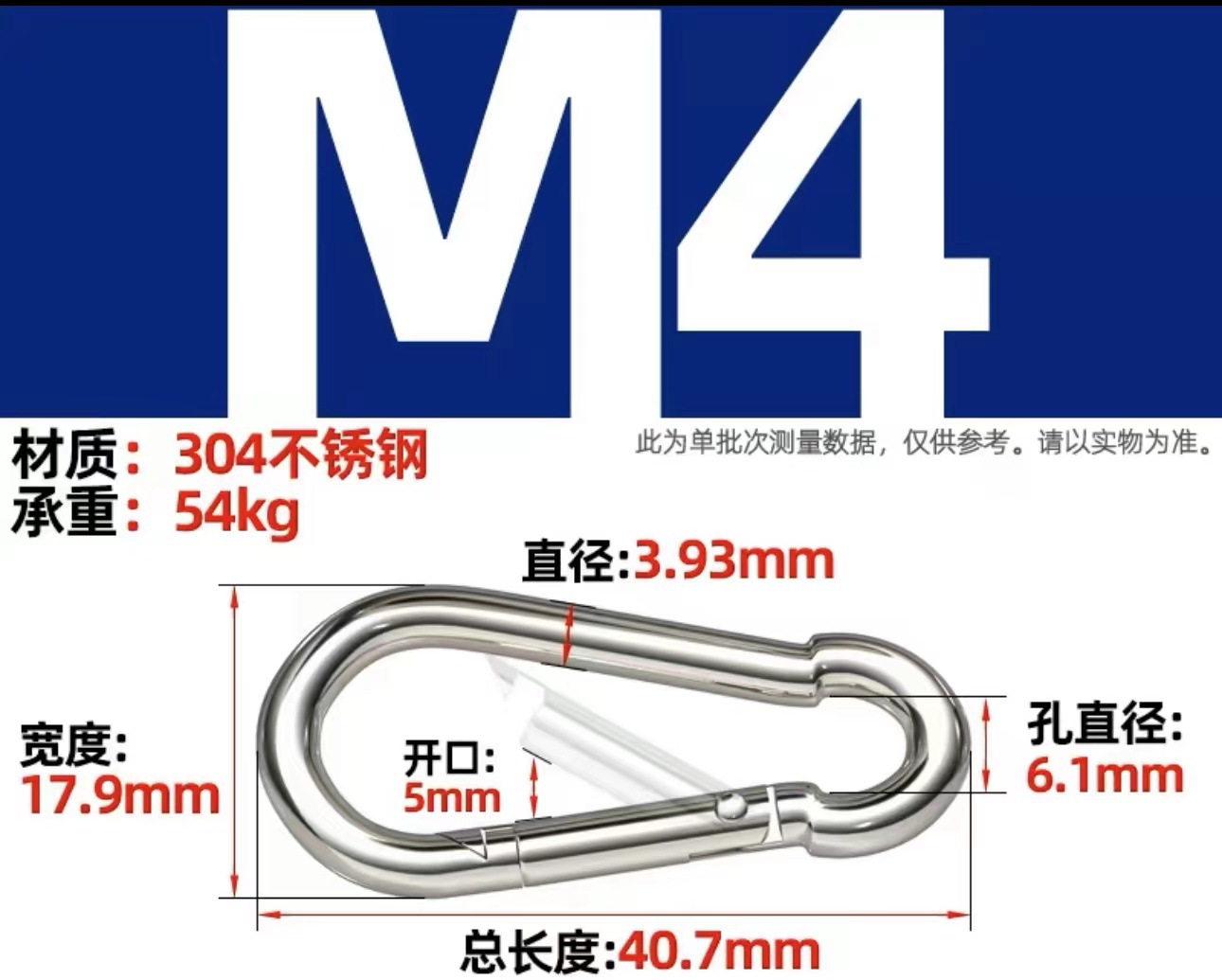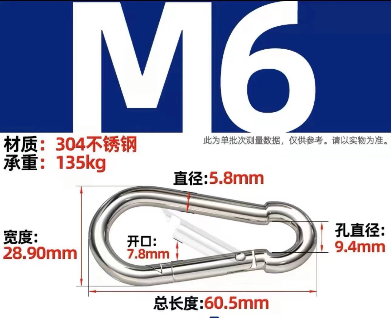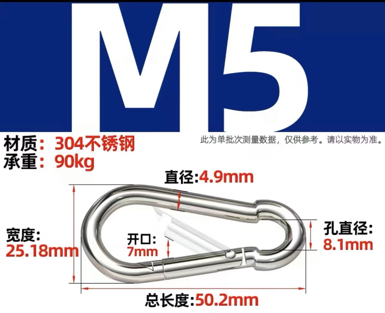 Пружинная пряжка из нержавеющей стали 304, карабин из нержавеющей стали, безопасная пряжка для кабеля, пружинный крючок, подъемный крюк