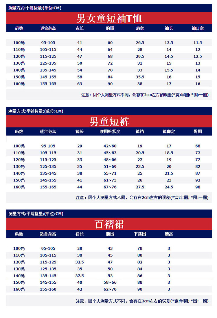 100cm; 110cm; 120cm; 130cm; 140cm; 150cm; 160cm; 170cm