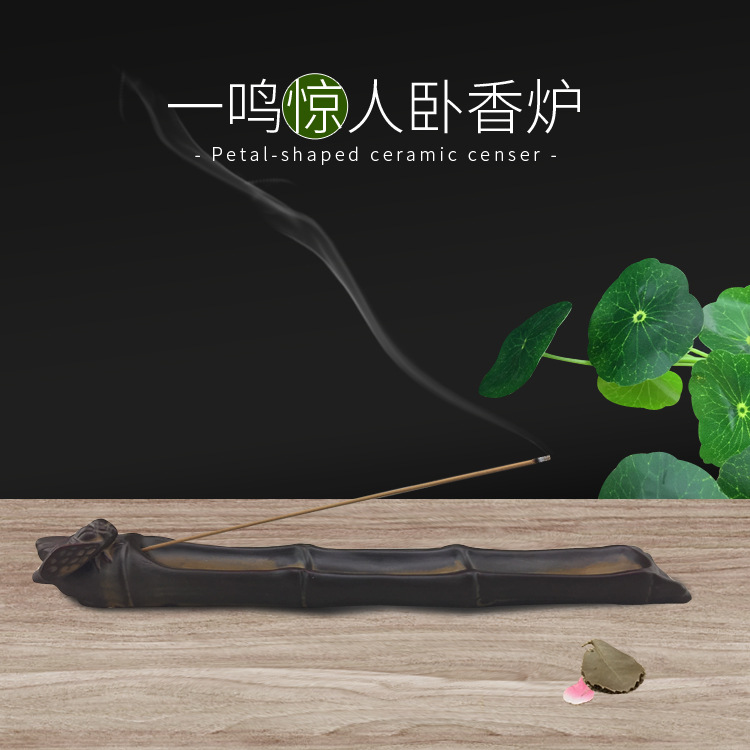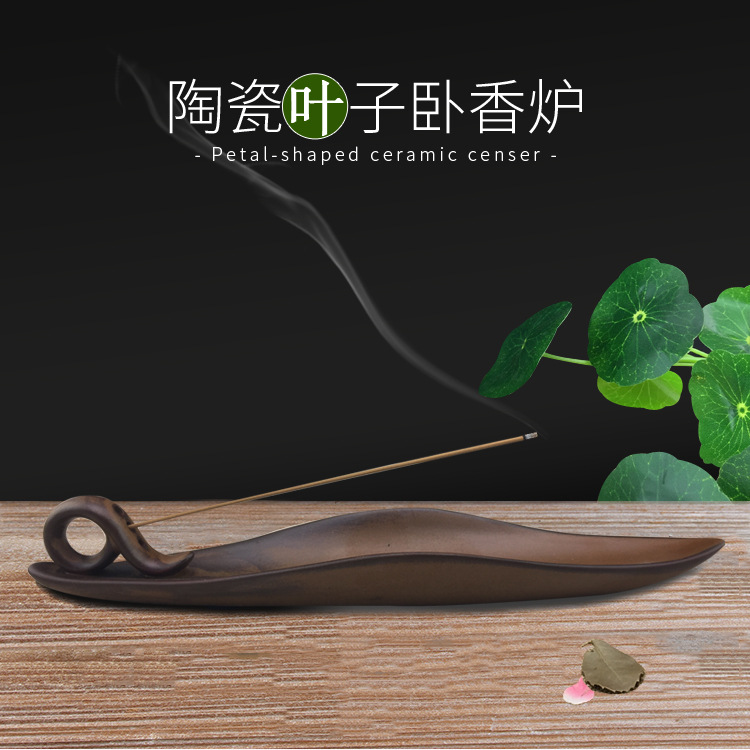Керамическая курильница с линией листьев, курильница, держатель для благовоний, украшение, керамическая креативная глазурь для печи, старинный дом, посвященный поклонению Будде