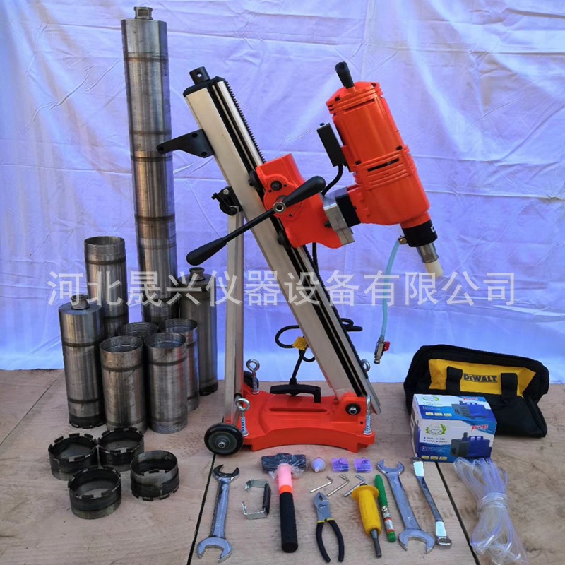 钻孔取芯机适合于2米以内取芯质检要求使用,该机多用用桥梁、隧道、大坝等施工检测单位进行钻孔取芯机检测使用,该机装有电流过载保护开关、当使用中卡钻或者扭力过大时自动断电保护钻机和使用人员的安全。