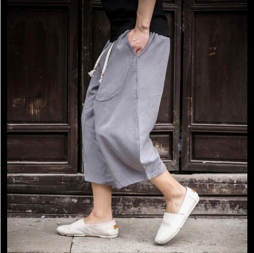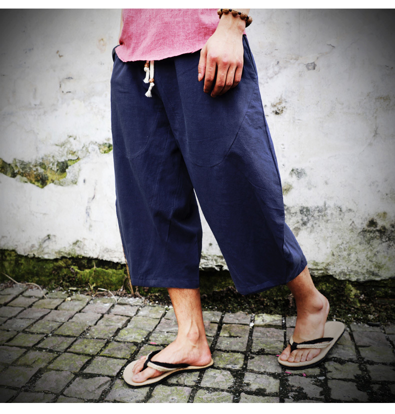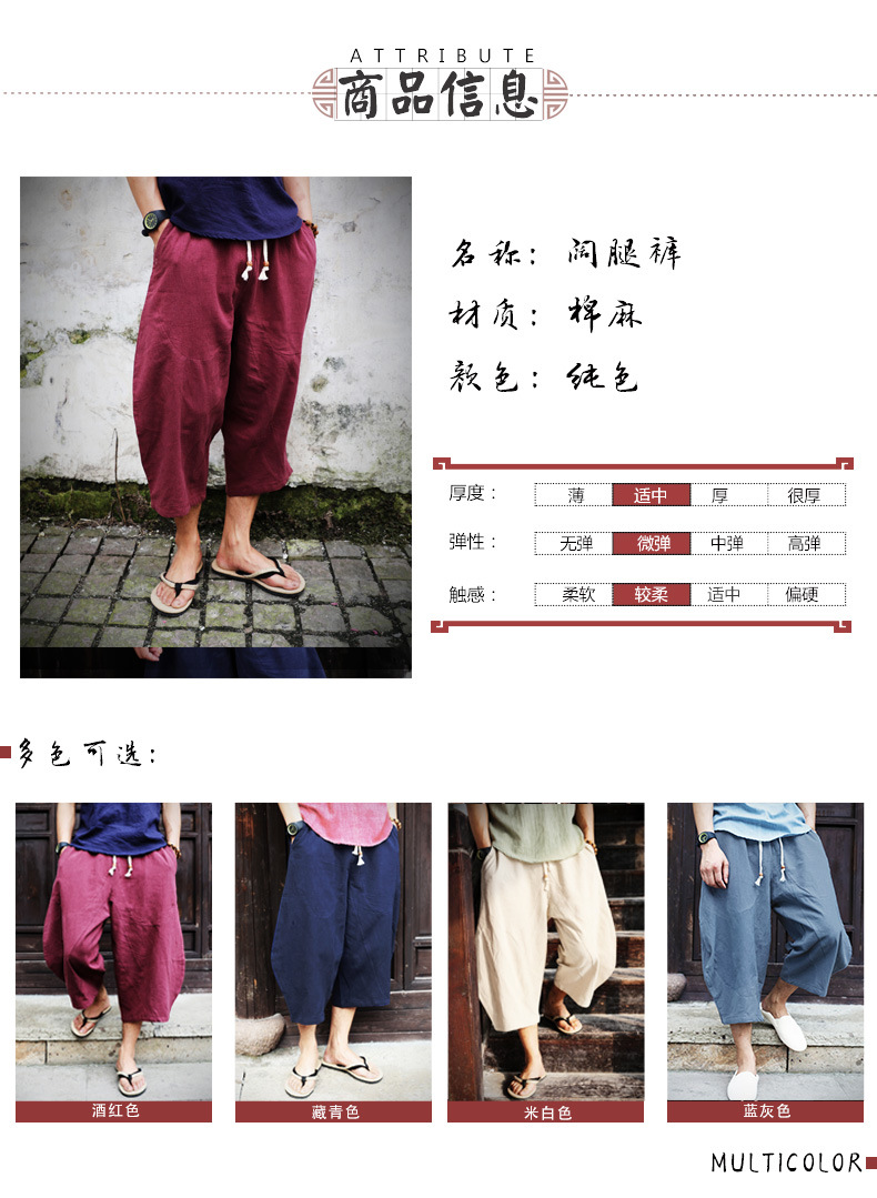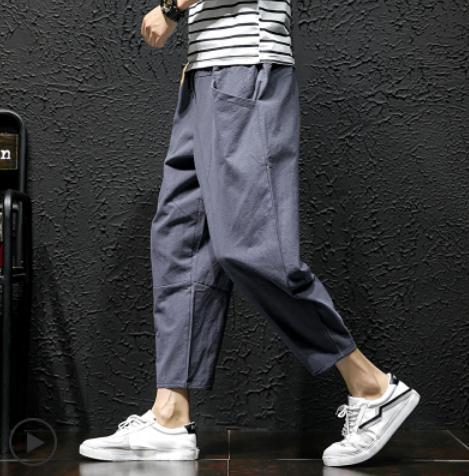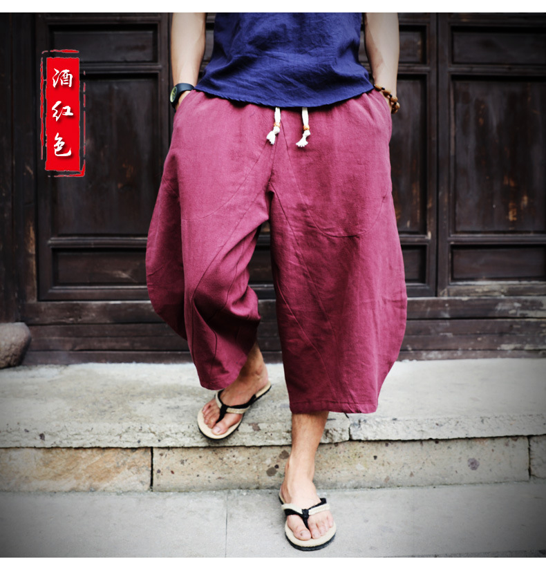 Мужские гарем в китайском стиле 2021 года из хлопка и льна, льняные мешковатые брюки, низкокачественные широкие Висячие брюки, модные мужские укороченные брюки оптом