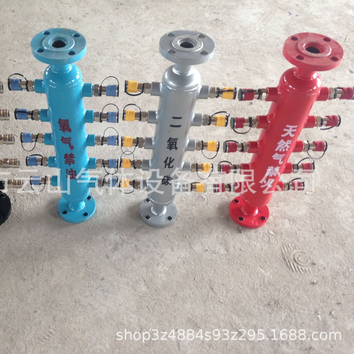 气体分气包(集气包,岗位气包,气体分配器)气体分气包专为现代化工厂车间岗位提供气源而设计,分为箱式和罐式两种,箱式采用金属外壳,内部有直接、减压式、流量式输出三种结构,可燃气体集头箱配有回火防止器,罐式集头箱采用管线式结构,可直接供气,也可接减压器、流量计。