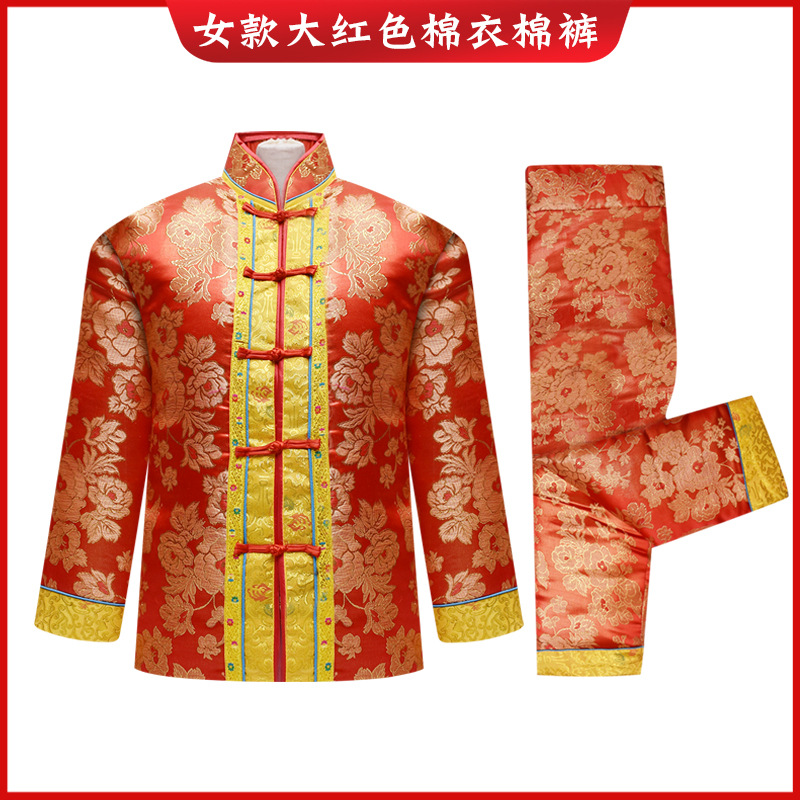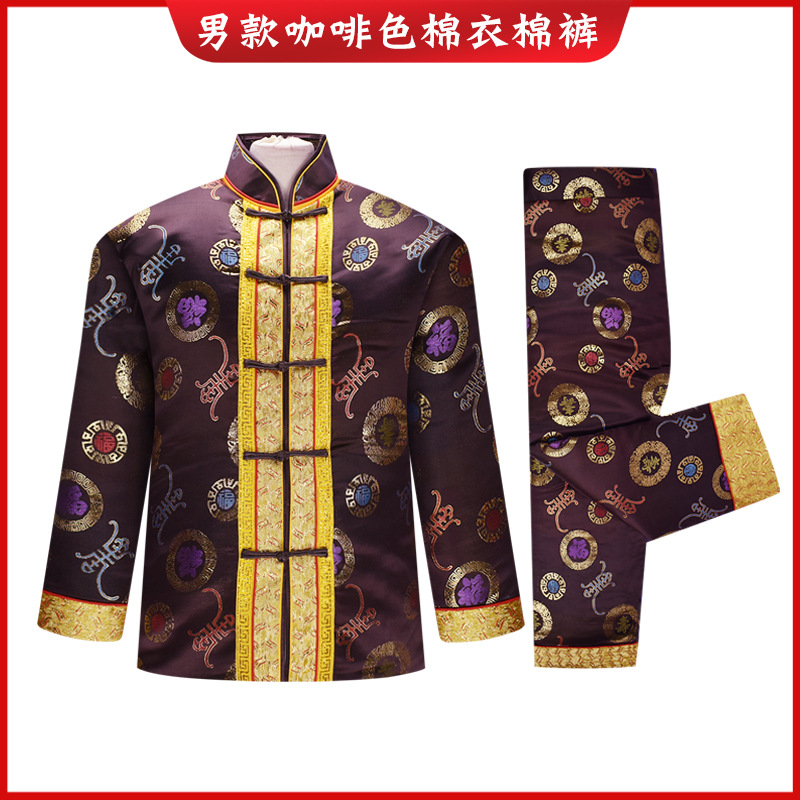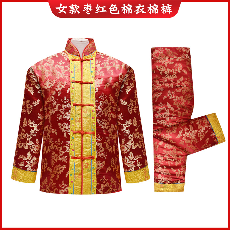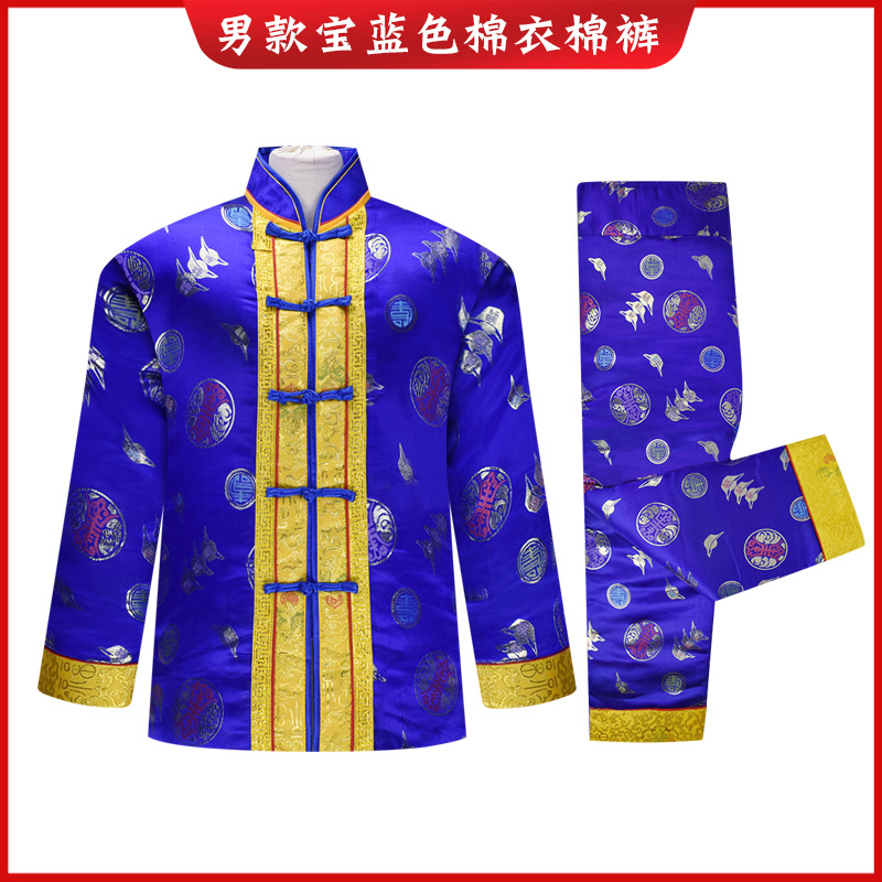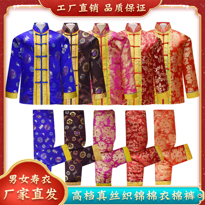 Комплект из двух предметов из парчи для пожилых людей, одежда для похорон, одежда для траурных церемоний, принадлежности для похорон, одежда для долголетия, хлопковое пальто и брюки для захоронения.